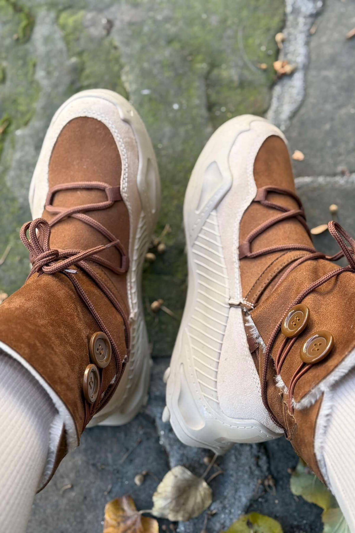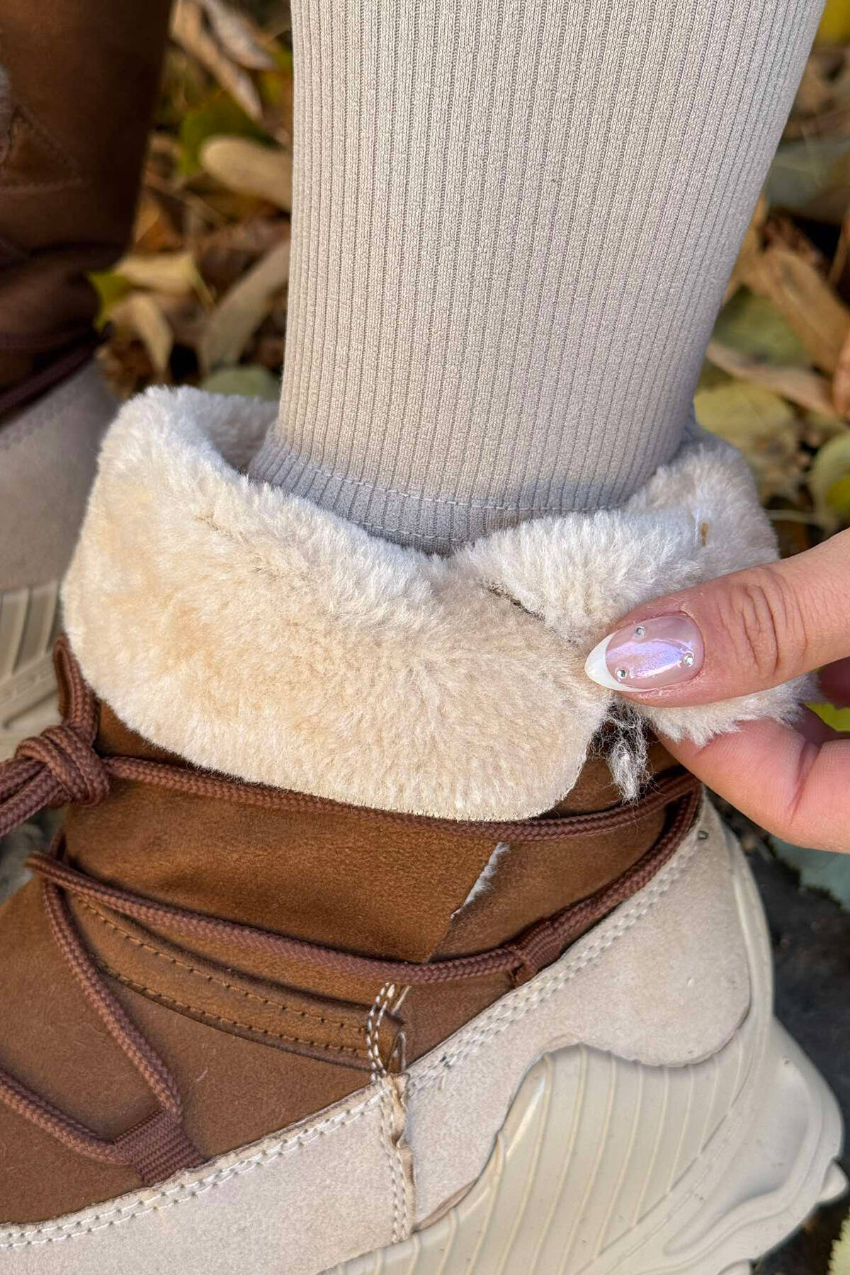 FLUFFY LACING WOMAN BOOTS LIGHT BROWN/KAZB
