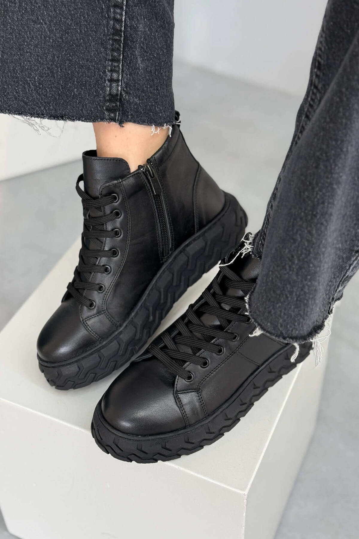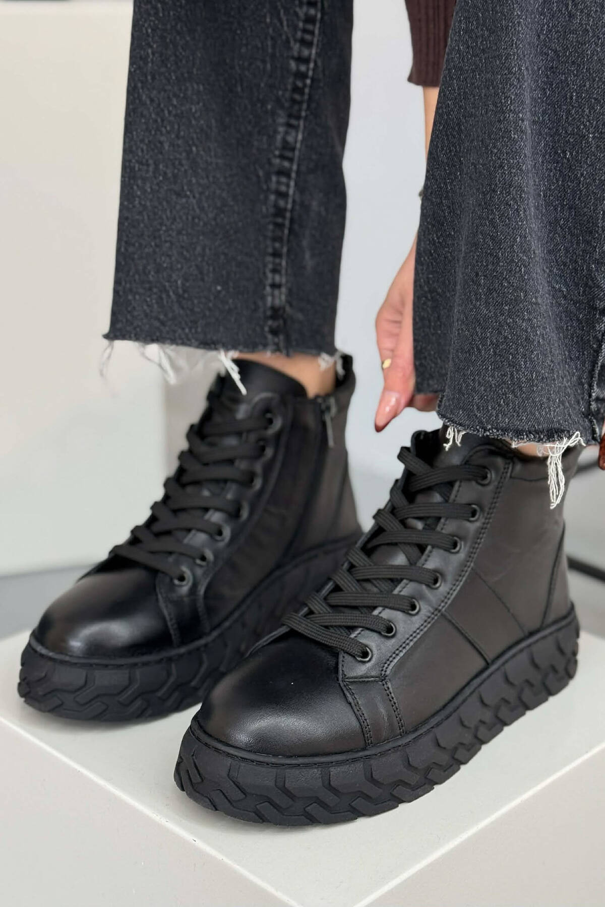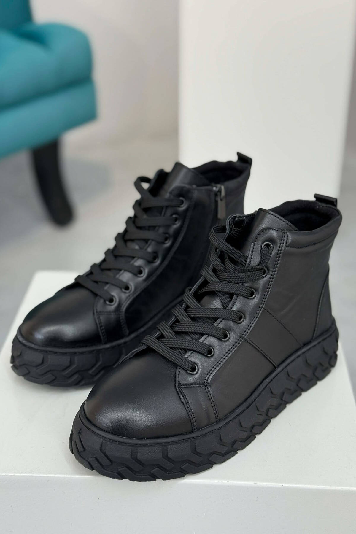 PLATFORM LEATHER SIDE ZIPPER WOMEN SNEAKERS BLACK/ E ZEZE
