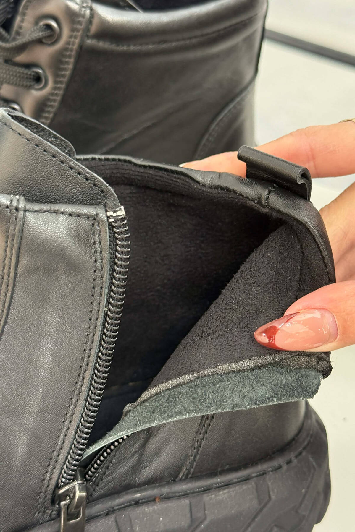 LEATHER FLUFFY SIDE ZIPPER WOMEN SNEAKERS BLACK/ E ZEZE