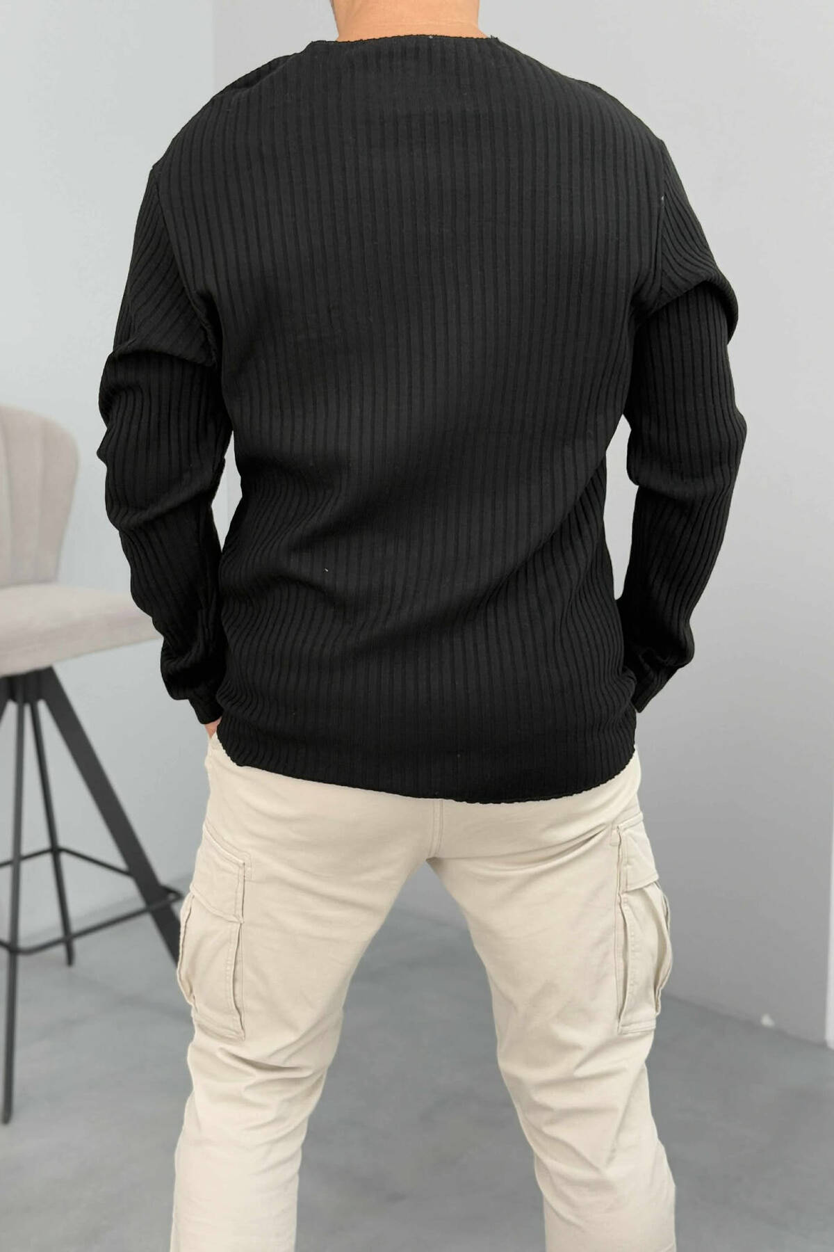 POCKET DETAIL ONE COLOR MEN SWEATER BLACK/ E ZEZE