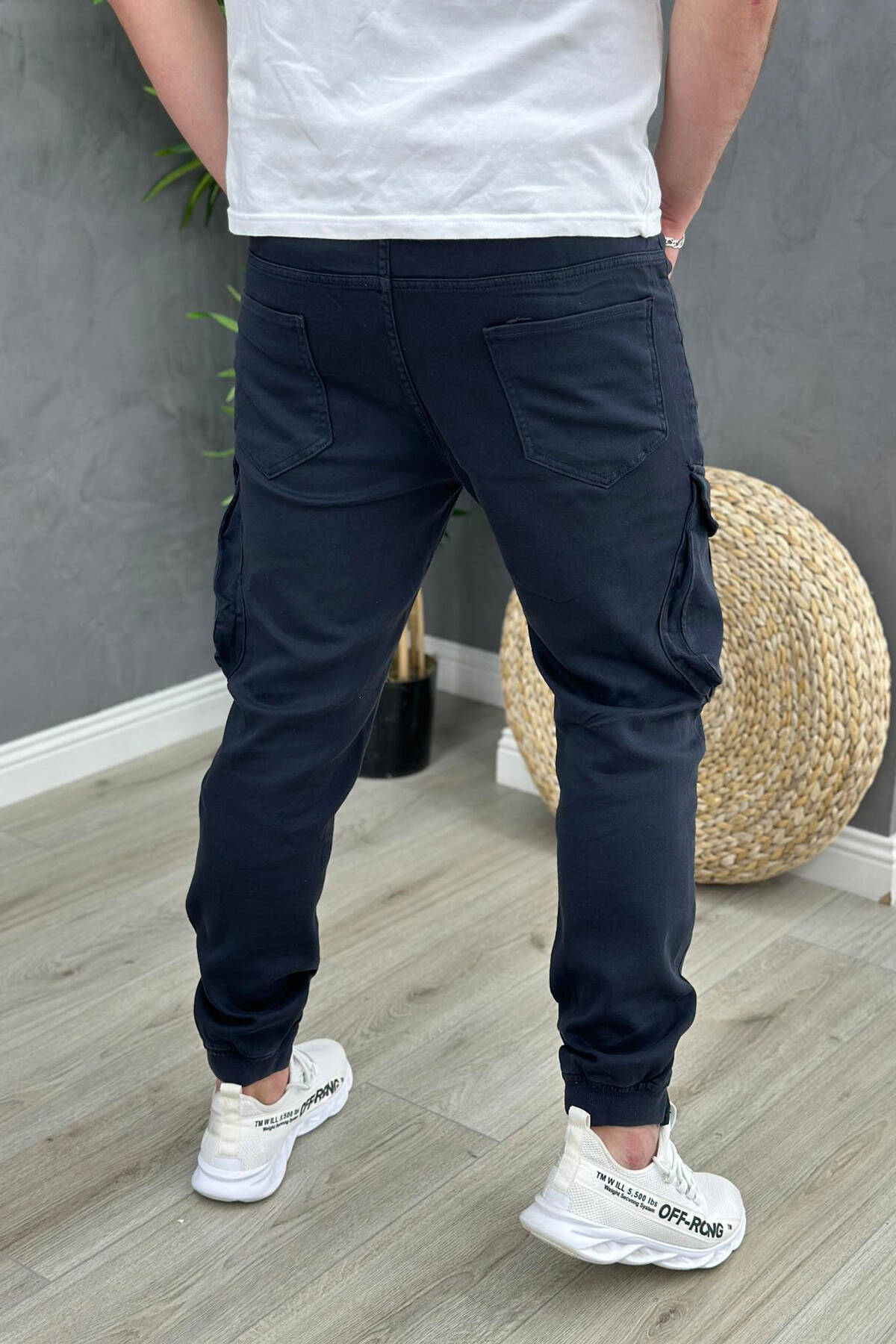 POCKET ONE COLOR MEN CARGO PANTS DARK BLUE/BEE