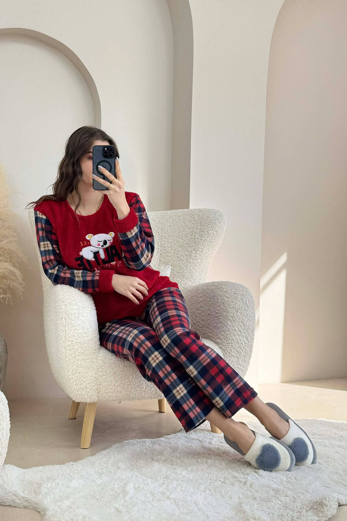POLAR FRONT IMAGE SWEATSHIRT+SWEATPANTS WOMEN PYJAMAS RED/E KUQE