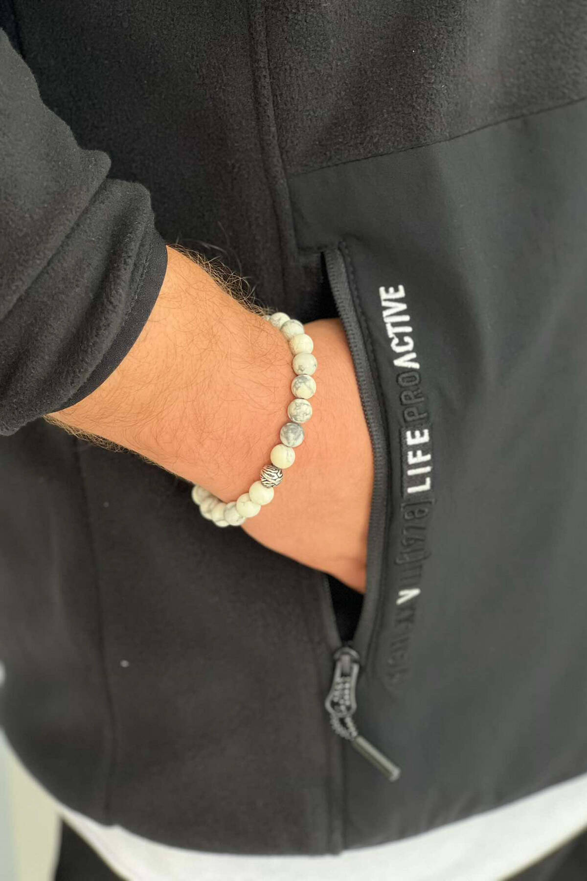 XHAKETË E THJESHTË NJËNGJYRËSHE ME JAKË ME ZINXHIR PËR MESHKUJ NË NGJYRËN GRI TË ZBARDHUR