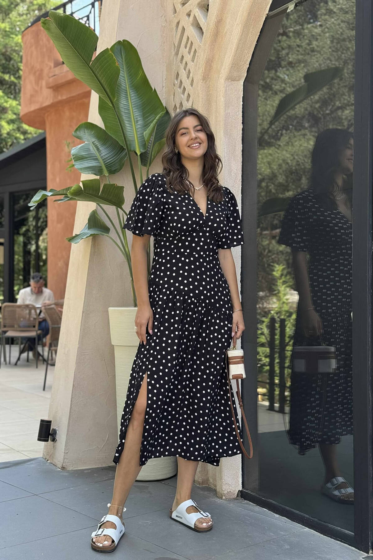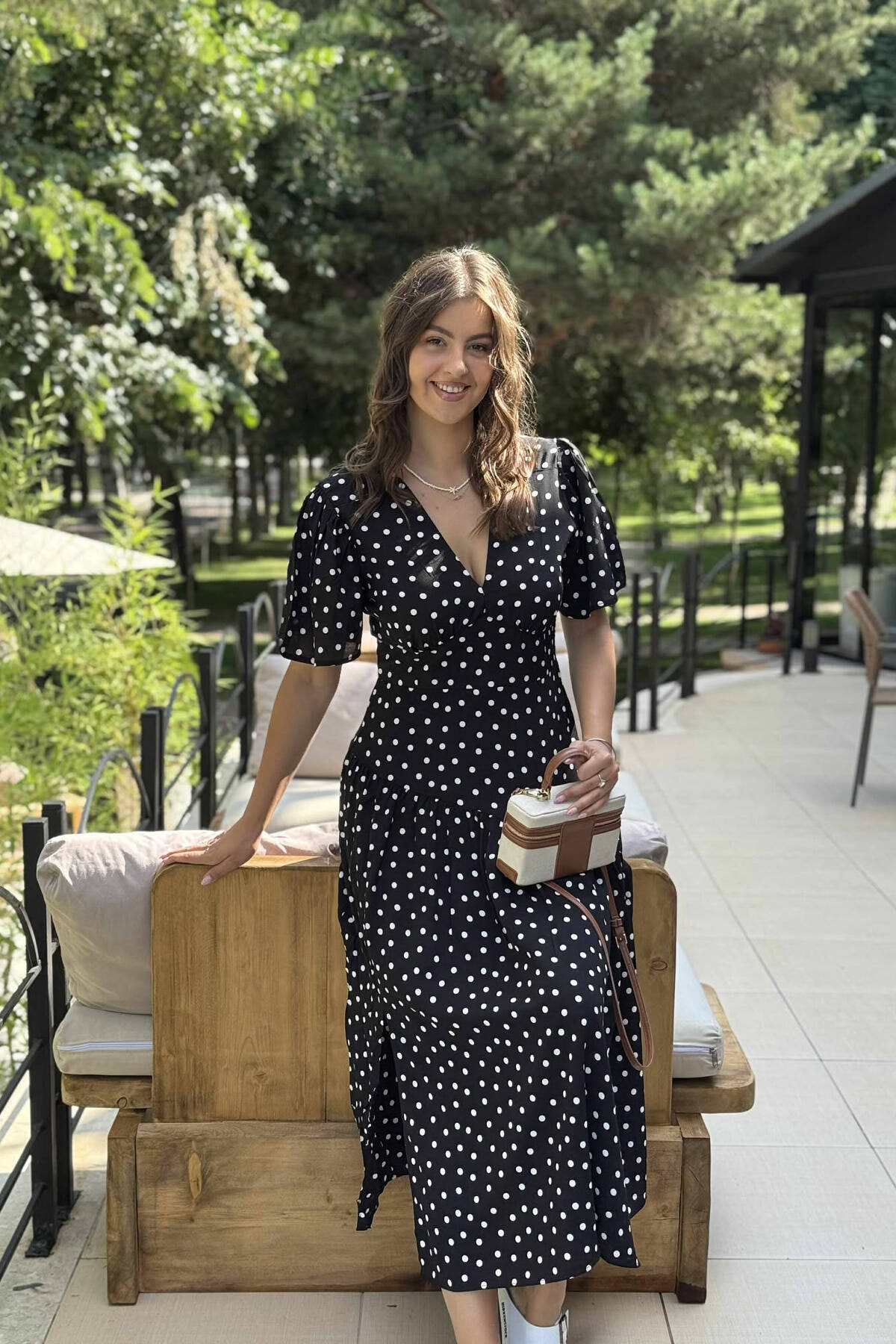 POLKA DETAIL LONG WOMEN DRESS BLACK/ E ZEZE