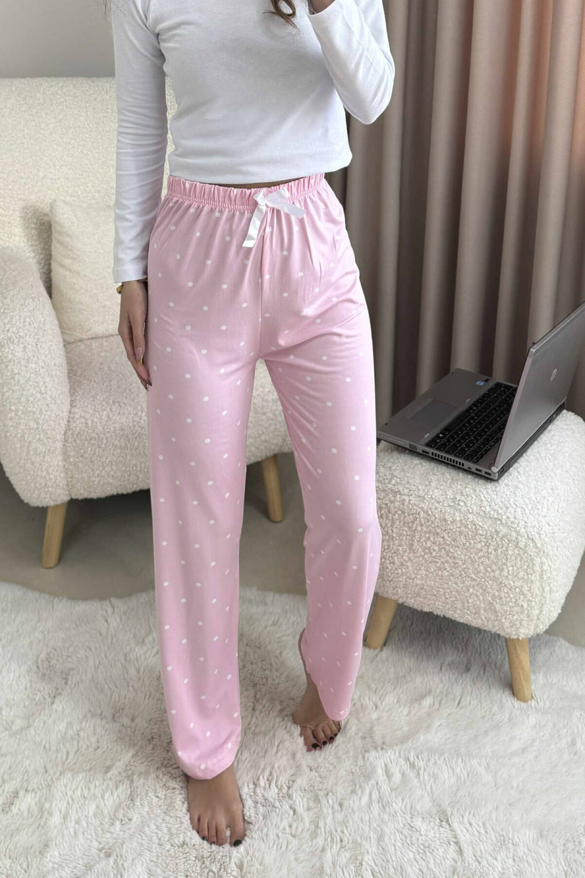POLKA DOTS BOW DETAIL WOMEN JOGGERS PINK/ROZE