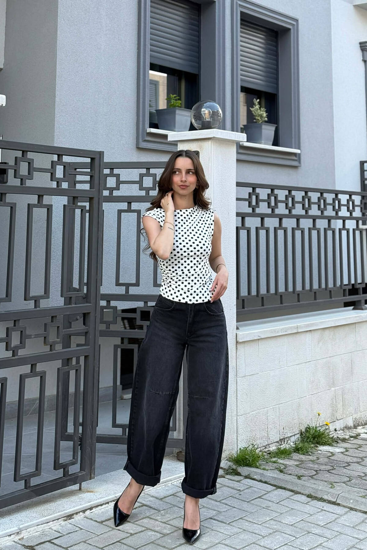 POLKA DOTS WOMAN TANK TOP BLACK/ E ZEZE