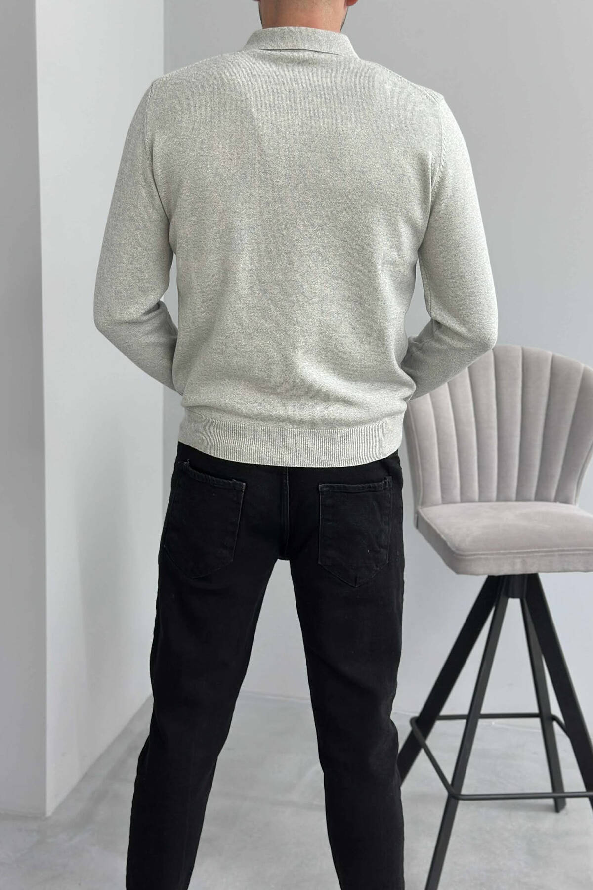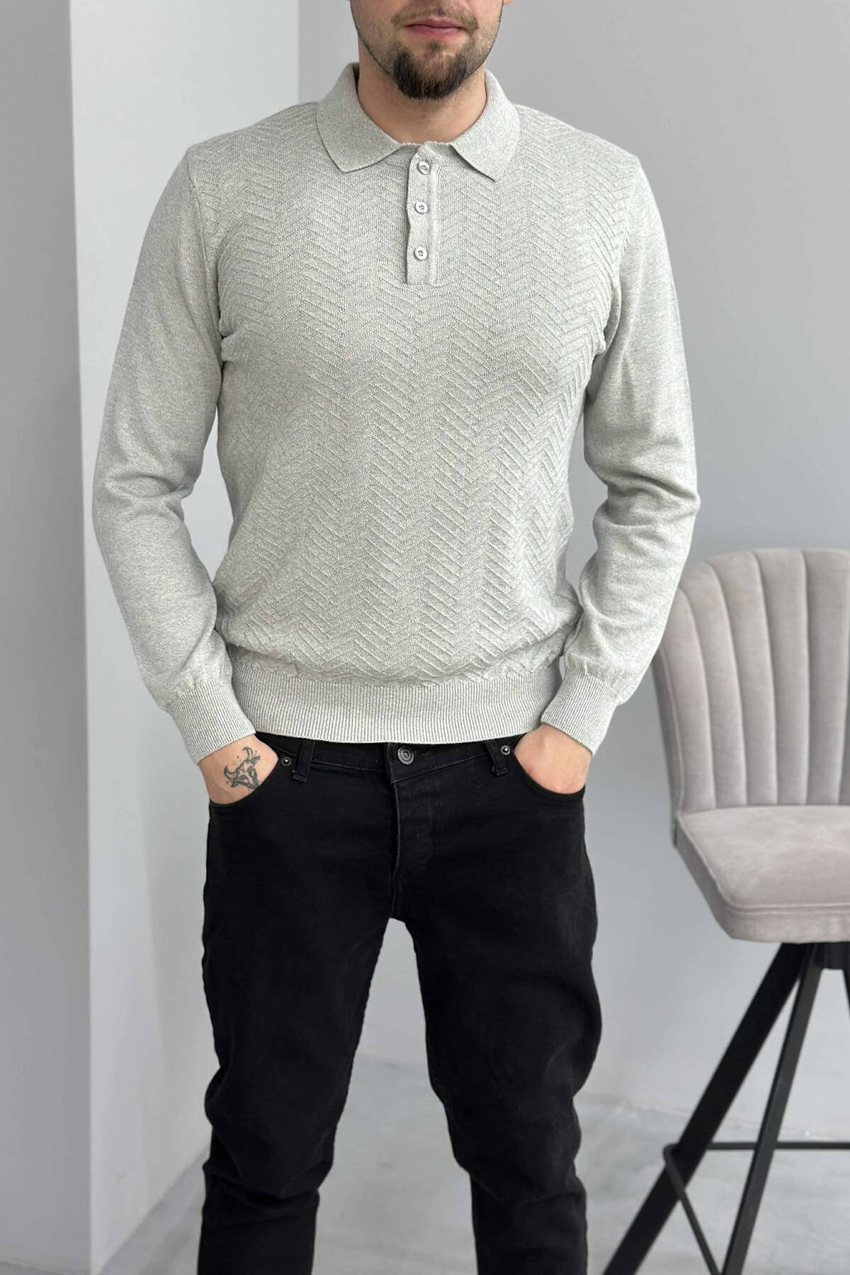 POLO BUTTONED NECK ONE COLOR MEN SWEATER LIGHT GREY/GZ