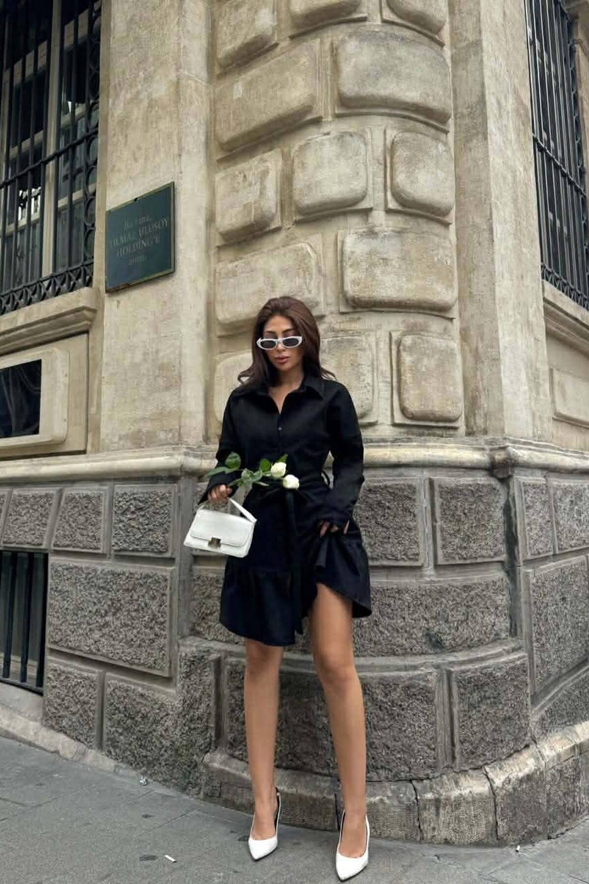 POLO NECK BUTTONED LACING DETAIL WOMEN DRESS BLACK/ E ZEZE