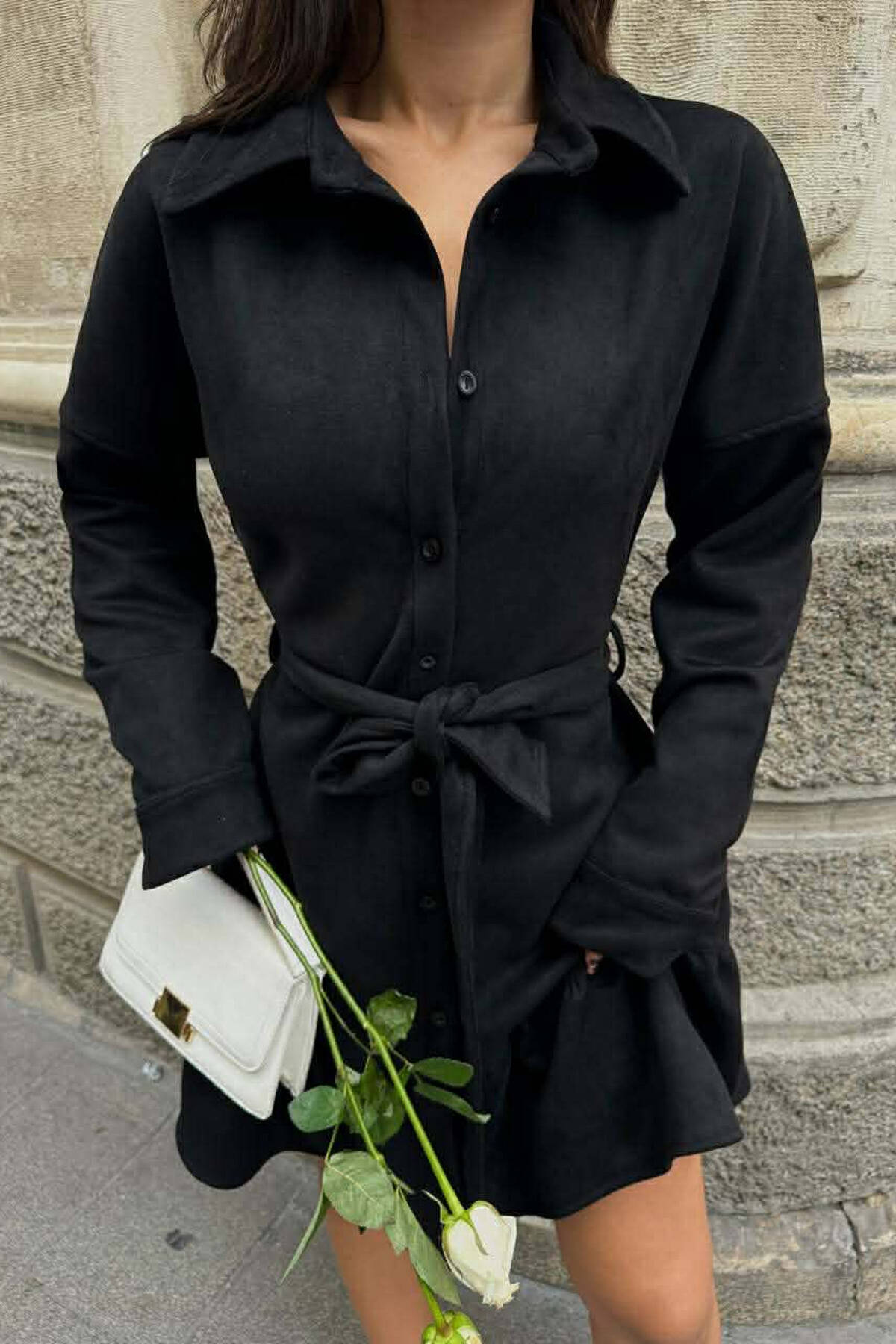 BELT DETAIL ZIPPERED SHORT LEATHER WOMEN DRESS BLACK/ E ZEZE