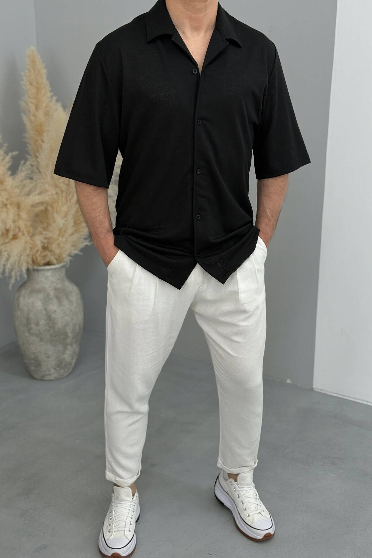 POLO NECK BUTTONED MEN SHIRT BLACK/ E ZEZE
