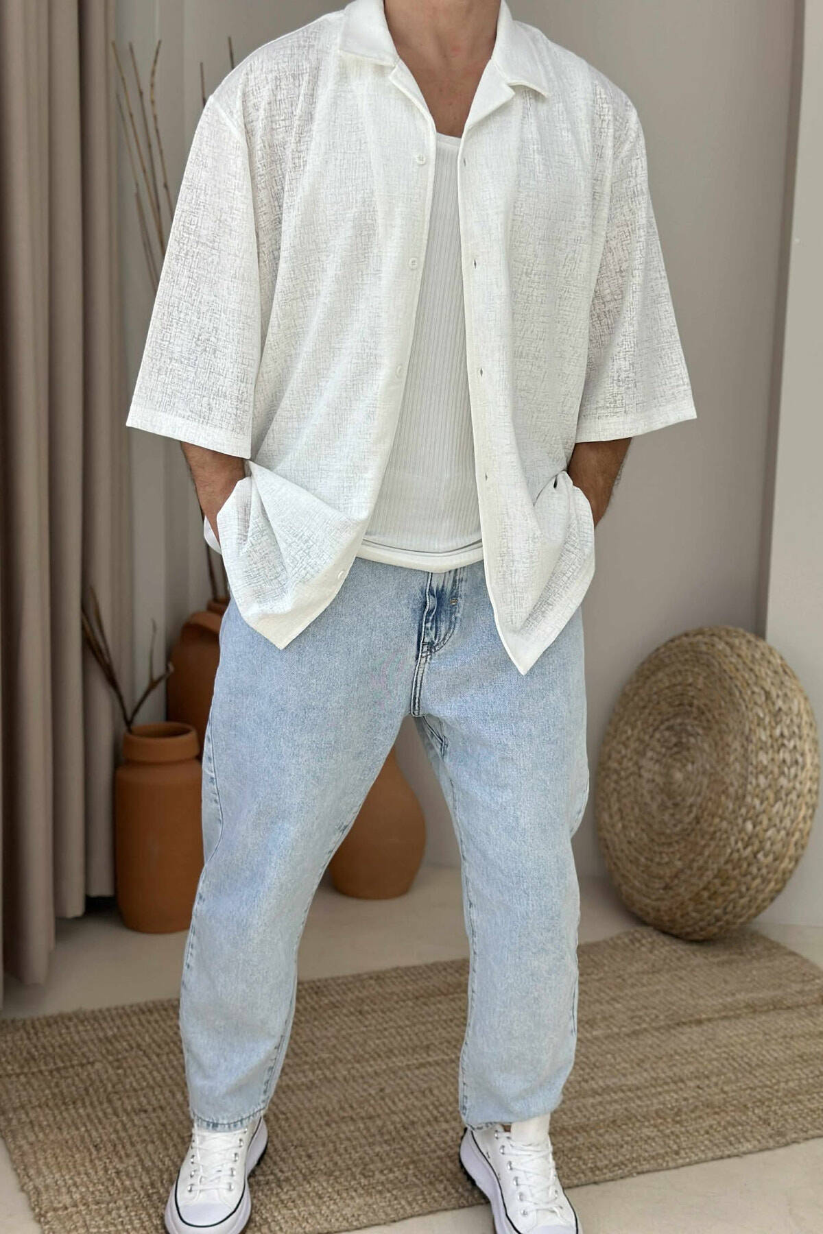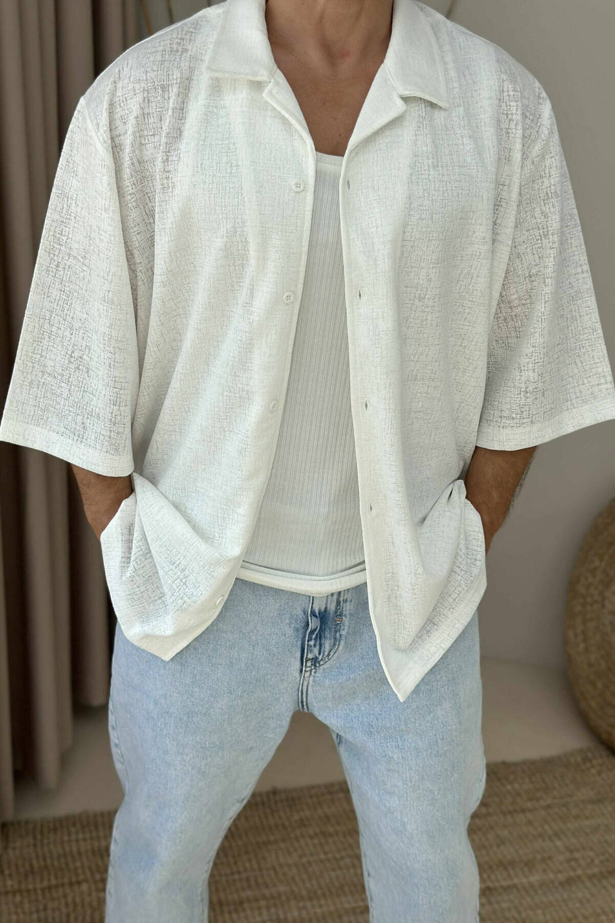 ROUND BUTTONED NECK ONE COLOR MEN SHIRT WHITE-E BARDHE