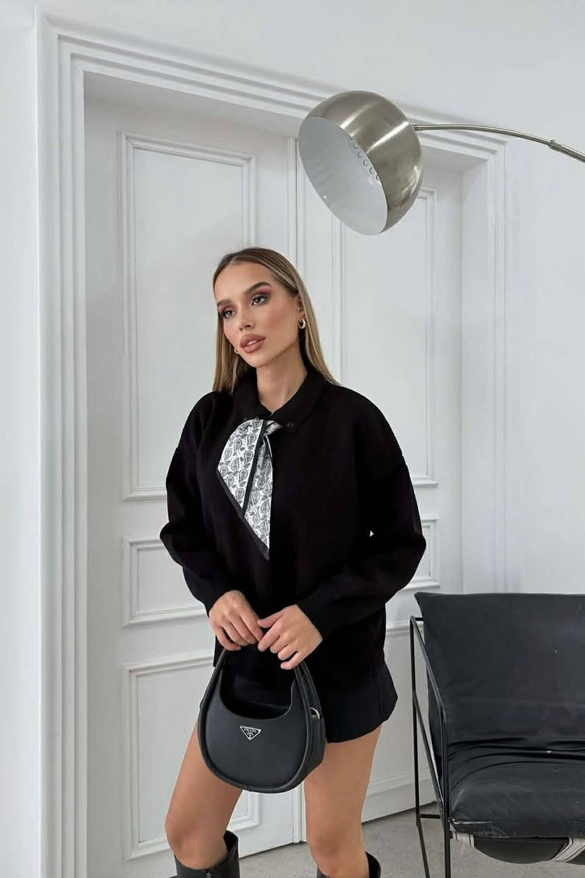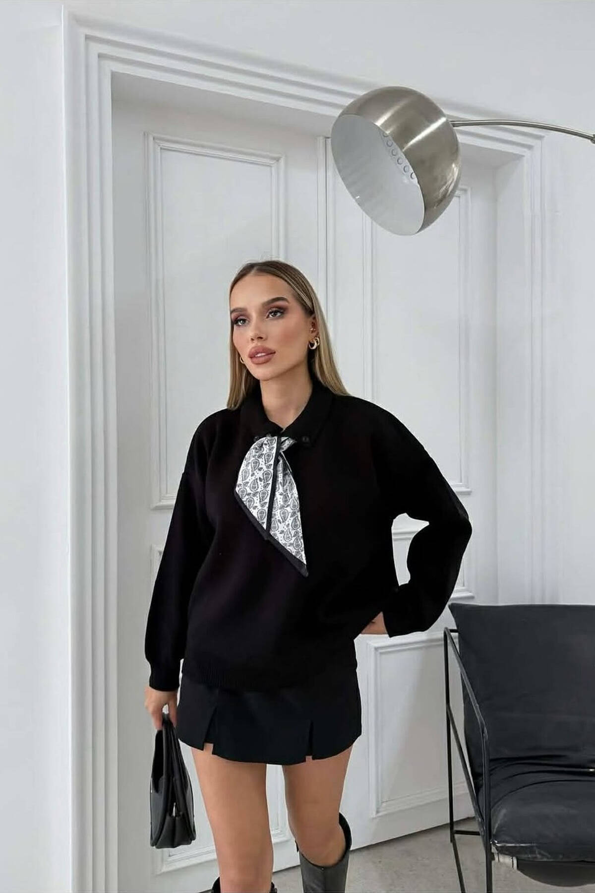 POLO NECK BUTTONED SCARF DETAIL WOMEN SWEATER BLACK/ E ZEZE