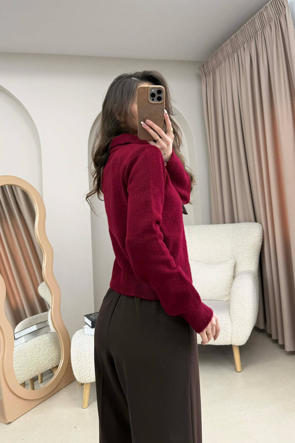 POLO NECK BUTTONED SCARF DETAIL WOMEN SWEATER DARK BURGUNDY/VISHNJE E ERRET