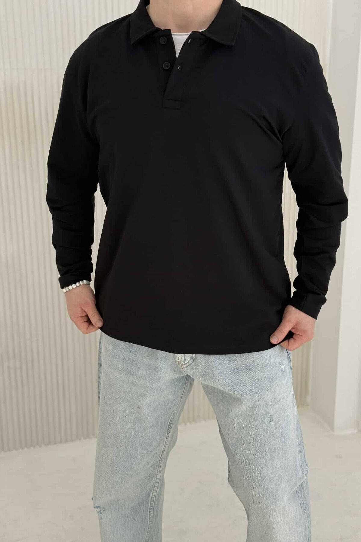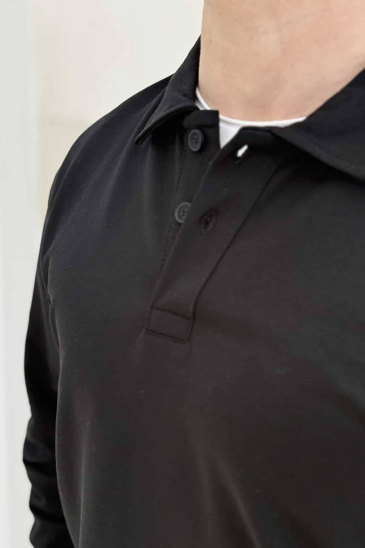 BLUZË E THJESHTË ME JAKË POLO PËR MESHKUJ NË NGJYRËN E ZEZË