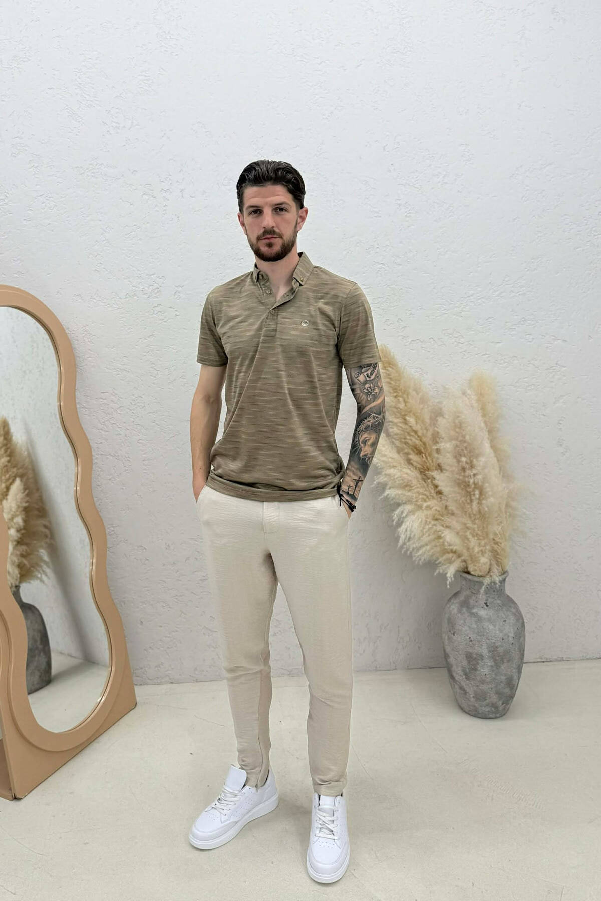 ONE COLOR POLO NECK MEN T-SHIRT BEIGE/BEZHE