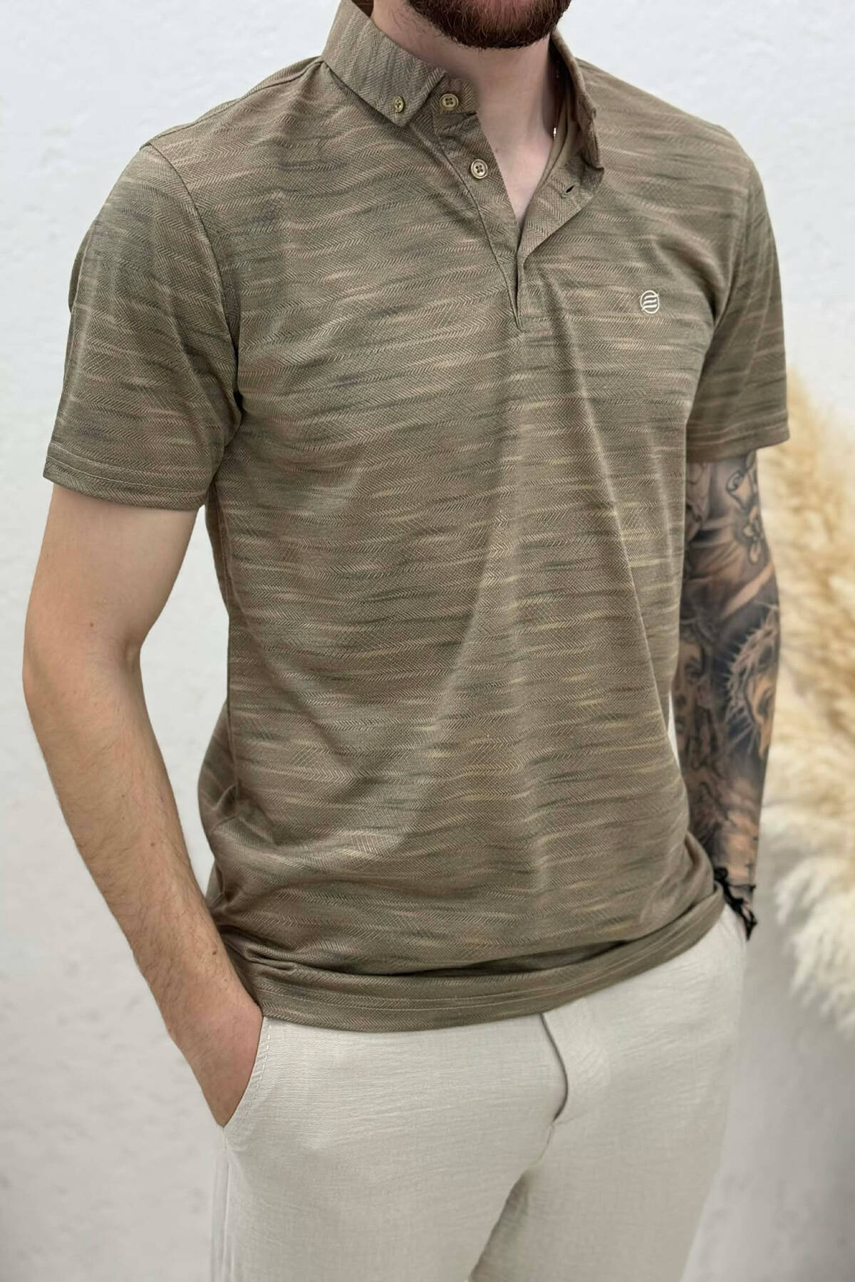 TEXTURED POLO NECK MEN T SHIRT BEIGE/BEZHE
