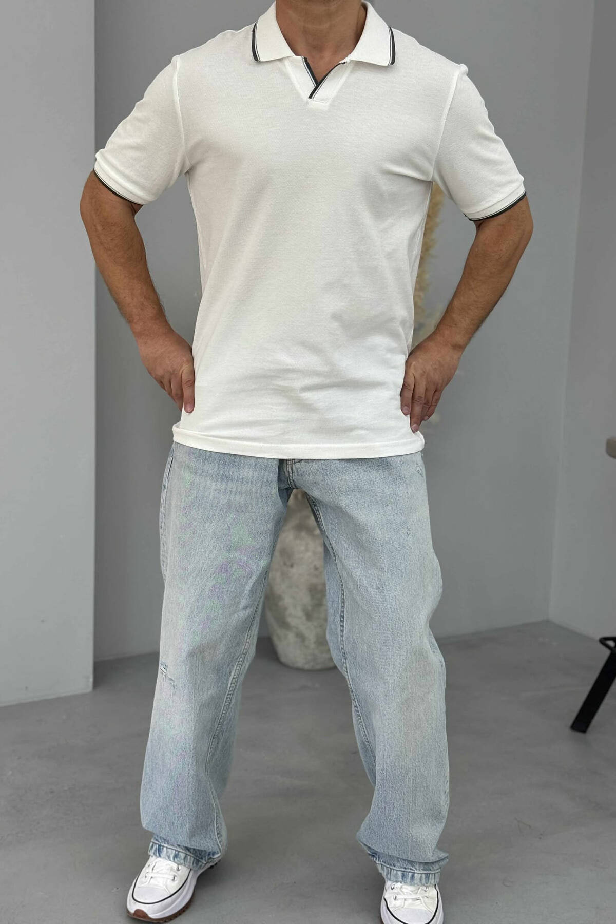 POLO NECK ONE COLOR MEN T-SHIRT WHITE-E BARDHE