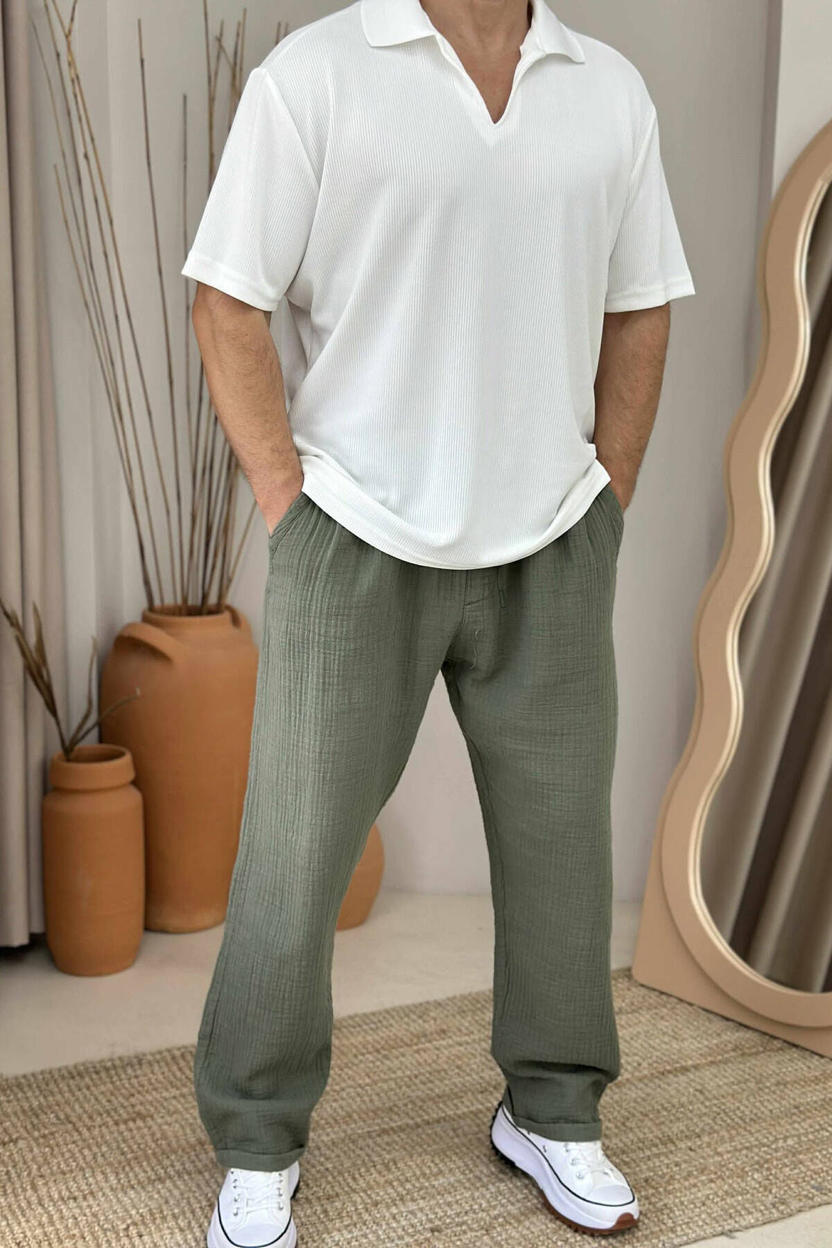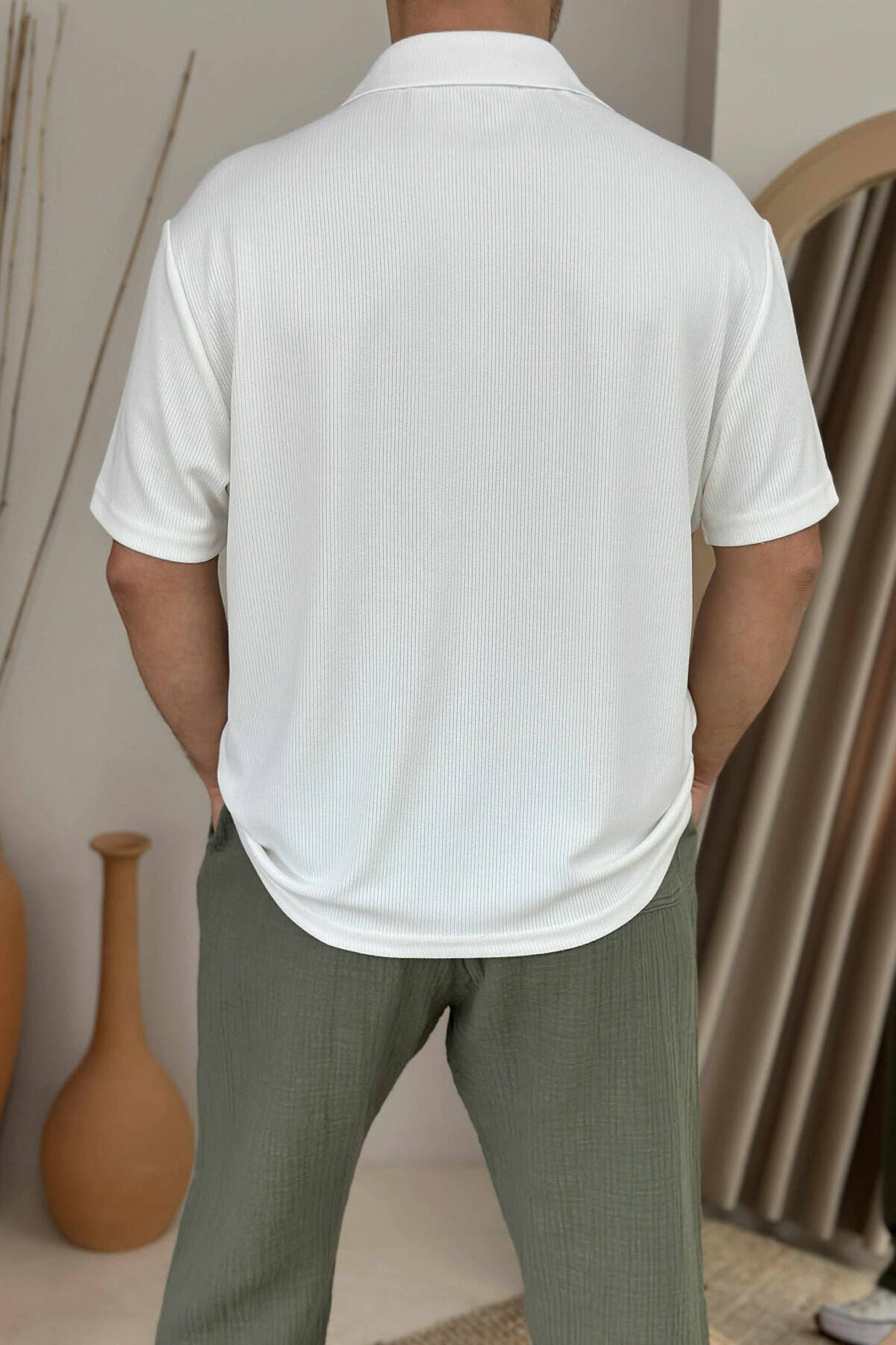 POLO NECK ONE COLOR MEN T-SHIRT WHITE-E BARDHE