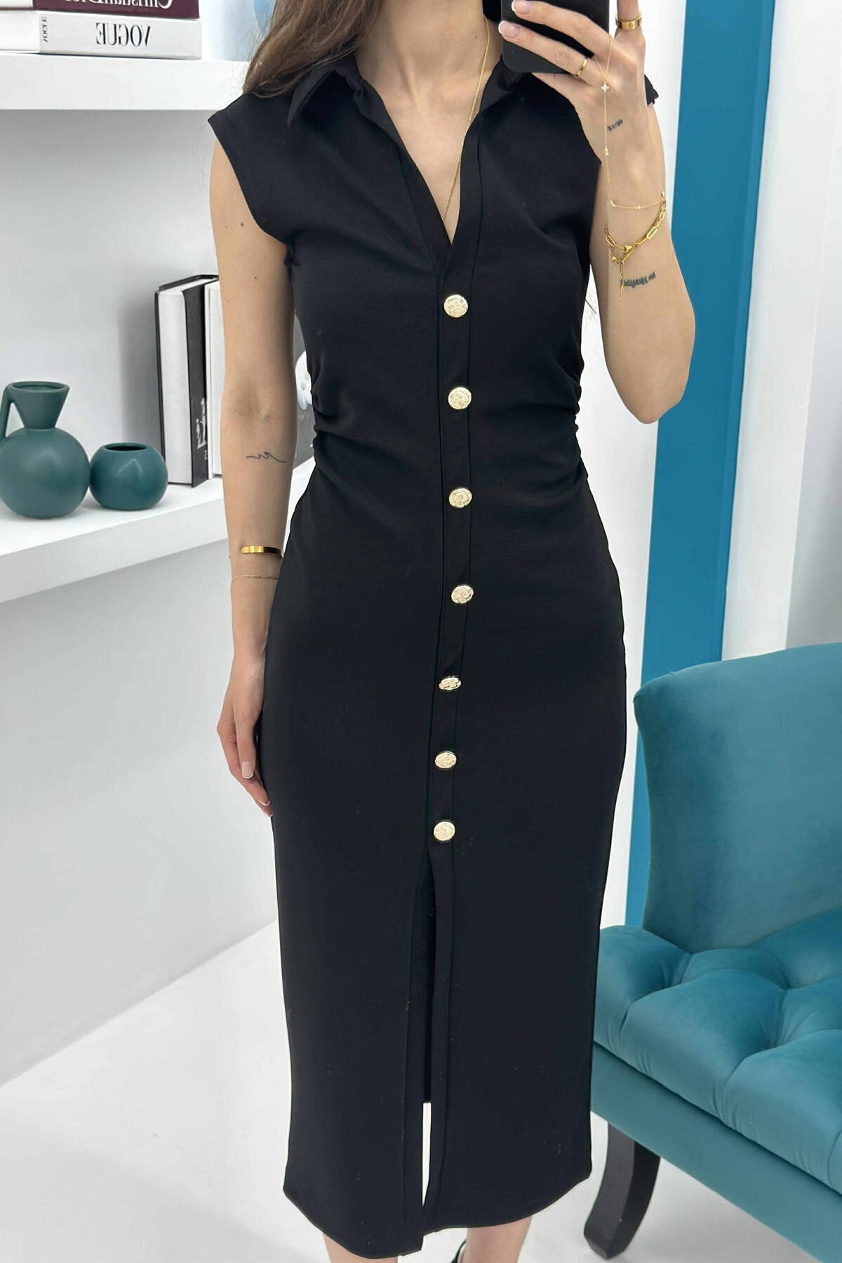 ONE COLOR BUTTONS V NECK WOMAN DRESS YELLOW/E VERDHE