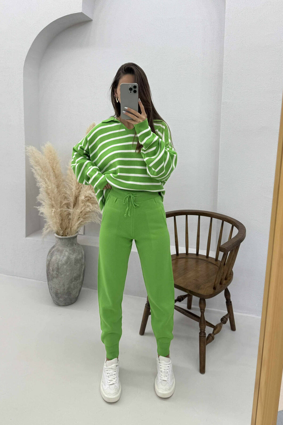 POLO NECK SWEATER+TROUSERS KNIT WOMEN SET LIGHT GREEN/JEZB