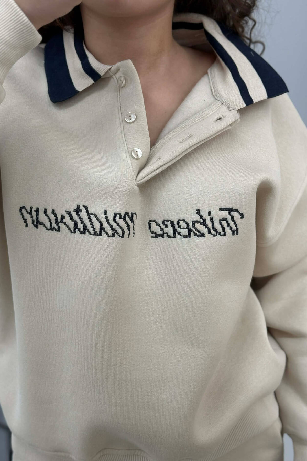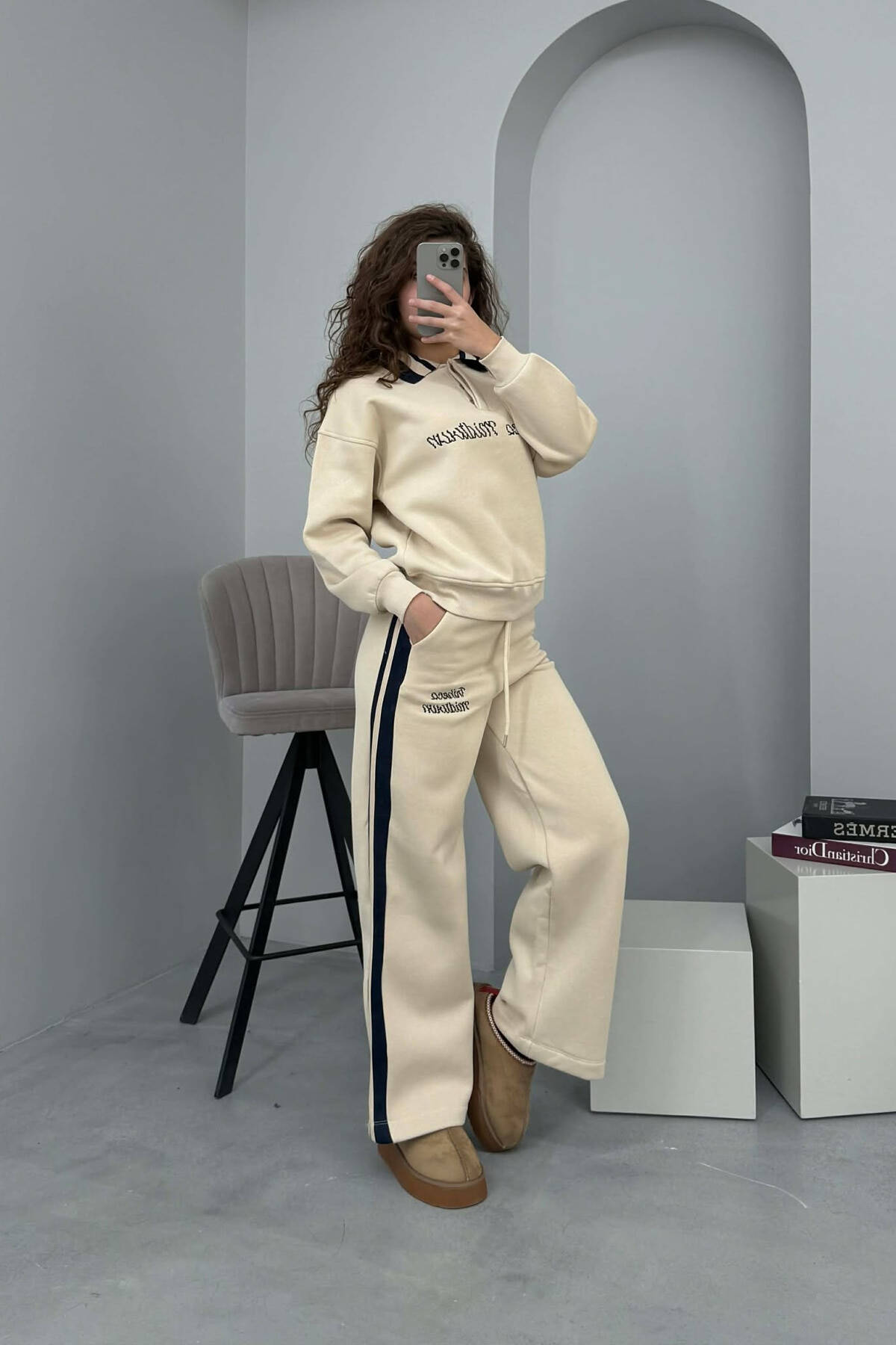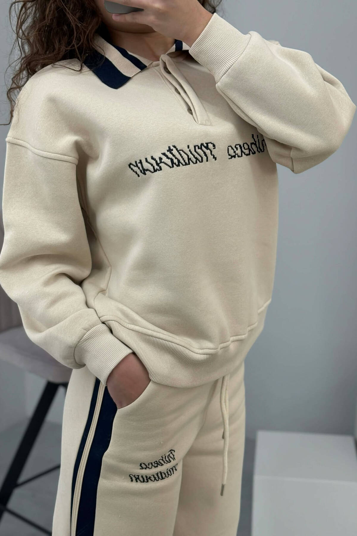 POLO NECK SWEATSHIRT+SWEATPANTS FLUFFY WOMEN SET BEIGE/BEZHE