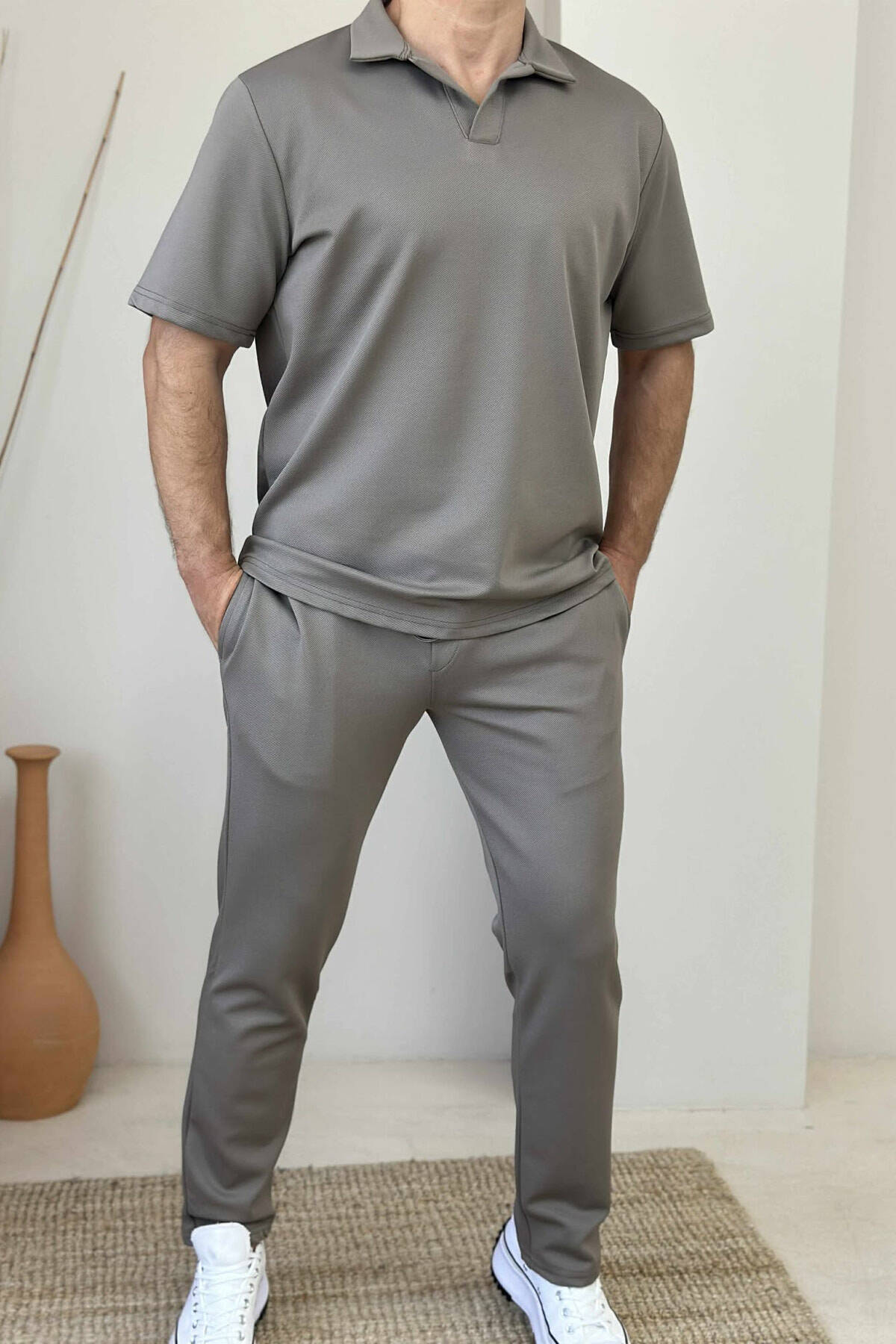 POLO NECK T-SHIRT+SWEATPANTS ONE COLOR MEN SET LIGHT BROWN/KAZB