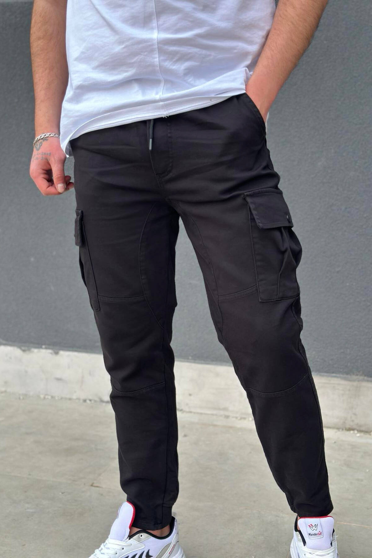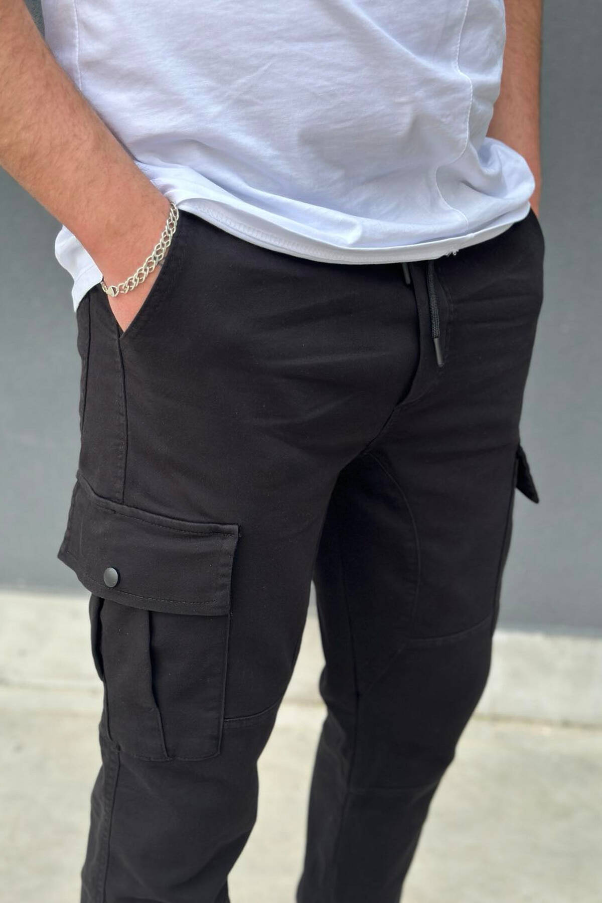 Pantallona cargo me xhepa per meshkuj ne ngjyren e zeze