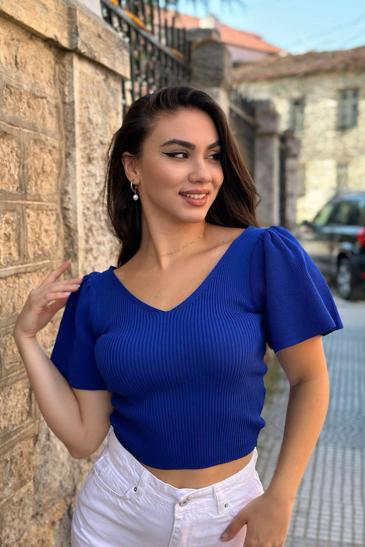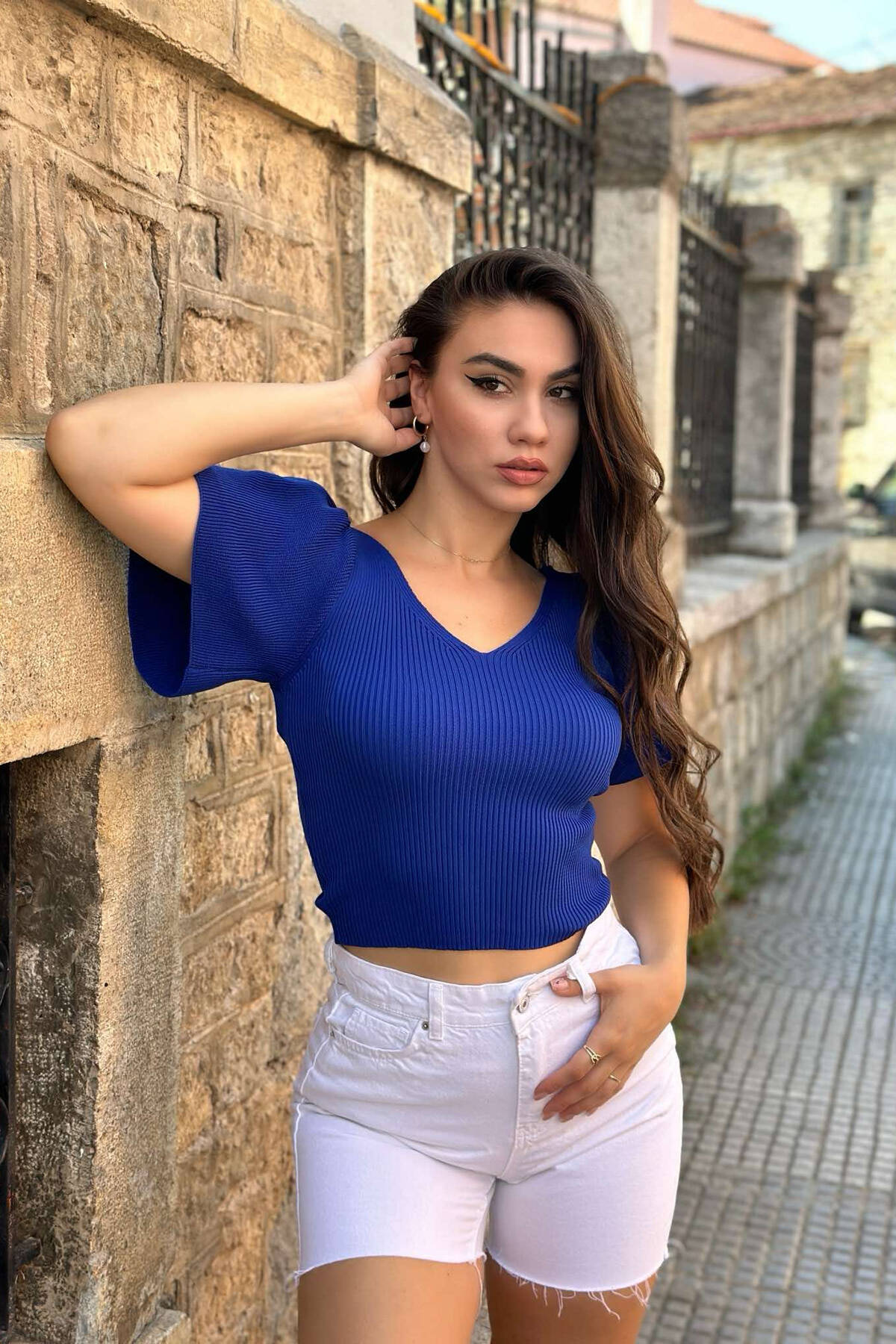 ONE COLOR V NECK WOMEN VEST DARK BLUE/BEE