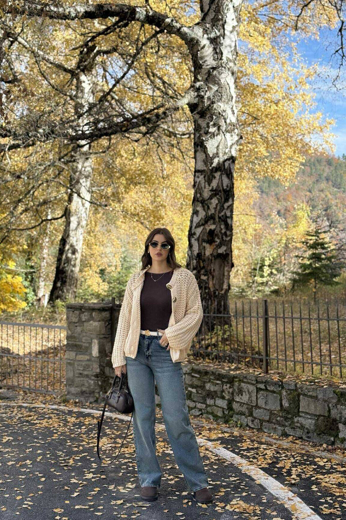 PULOVËR E THJESHTË E THURRUR E DETAJIN E BUTONAVE PËR FEMRA NË NGJYRË BEZHË