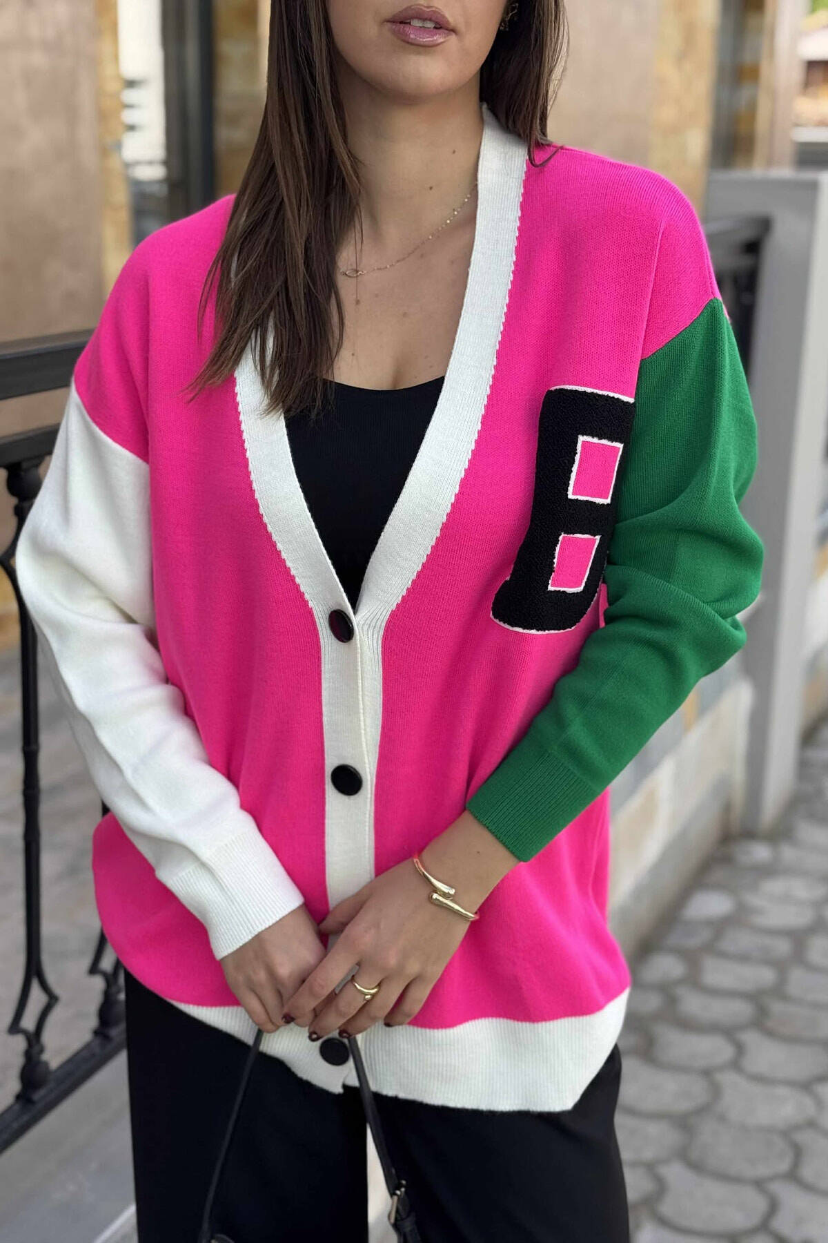 ONE COLOR KNITTED DIAMOND DETAIL BUTTONS WOMEN CARDIGAN FUCHSIA/CIKLAMI