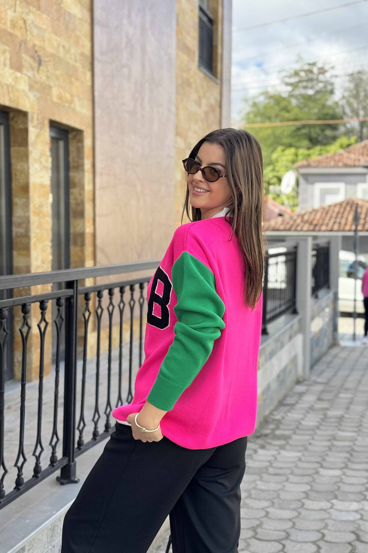 PULOVËR E THJESHTË ME SHKRONJËN B PËR FEMRA NË NGJYRË CIKLAMI