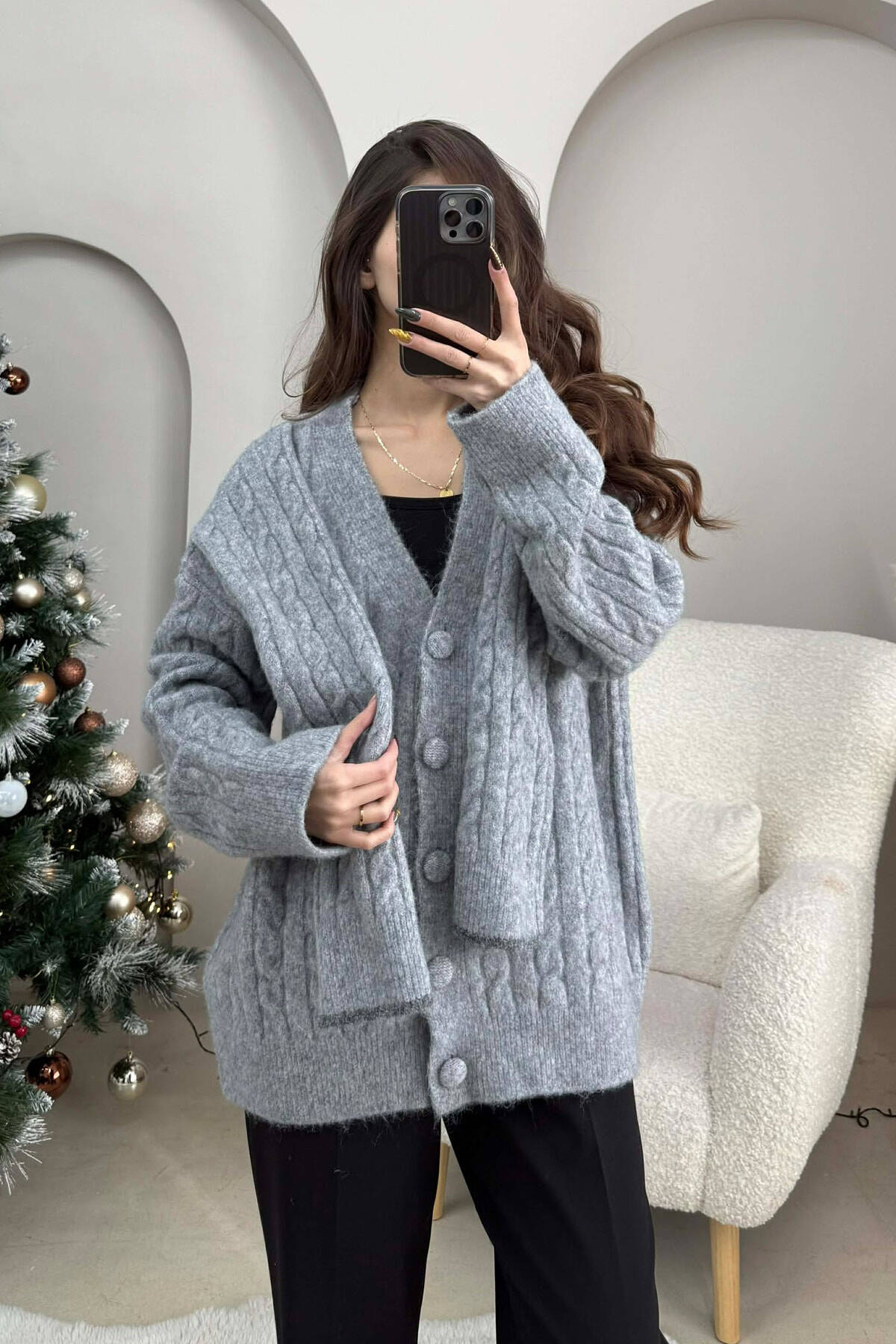PULOVER ME KOPSA DHE DIZAJN ROMBESH PER FEMRA NE NGJYRE GRI TE ERRET