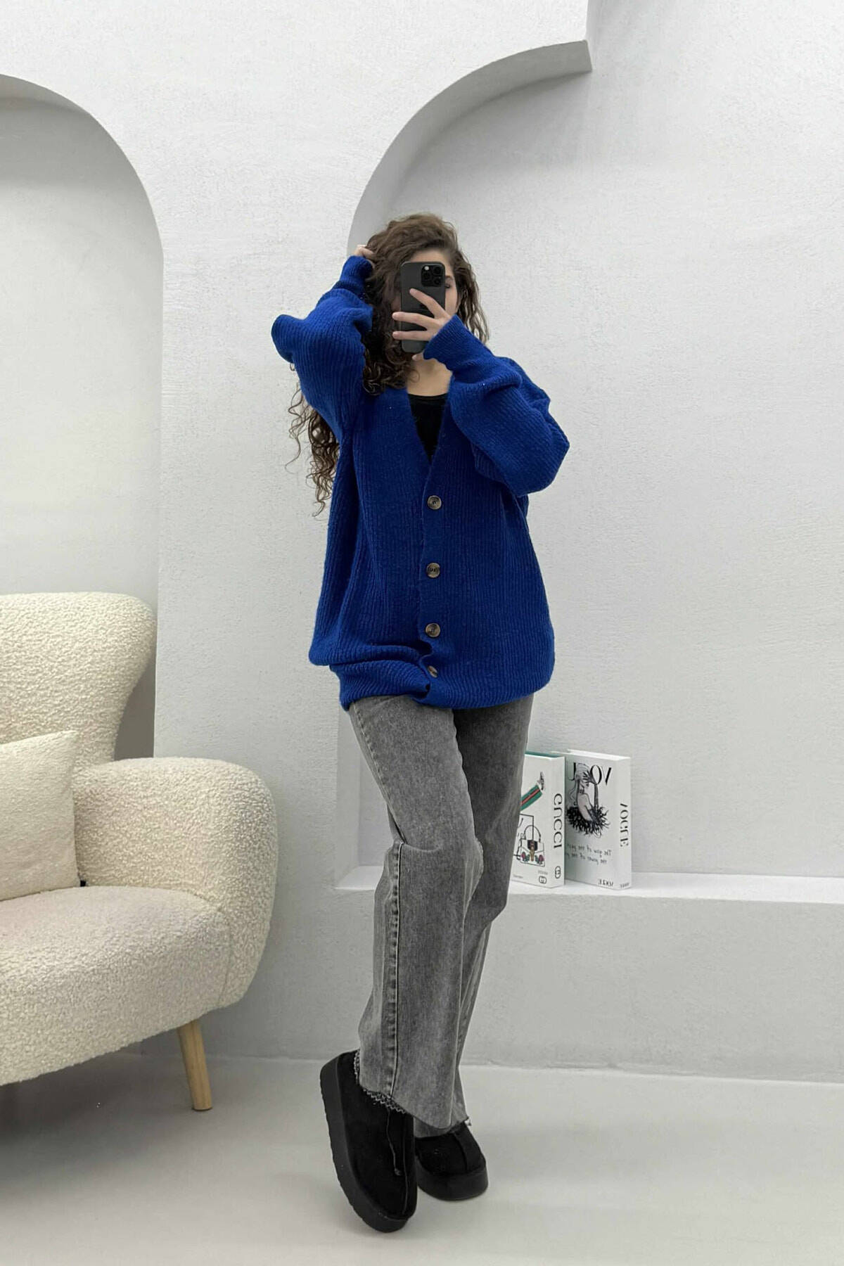ONE COLOR KNITTED DIAMOND DETAIL BUTTONS WOMEN CARDIGAN FUCHSIA/CIKLAMI