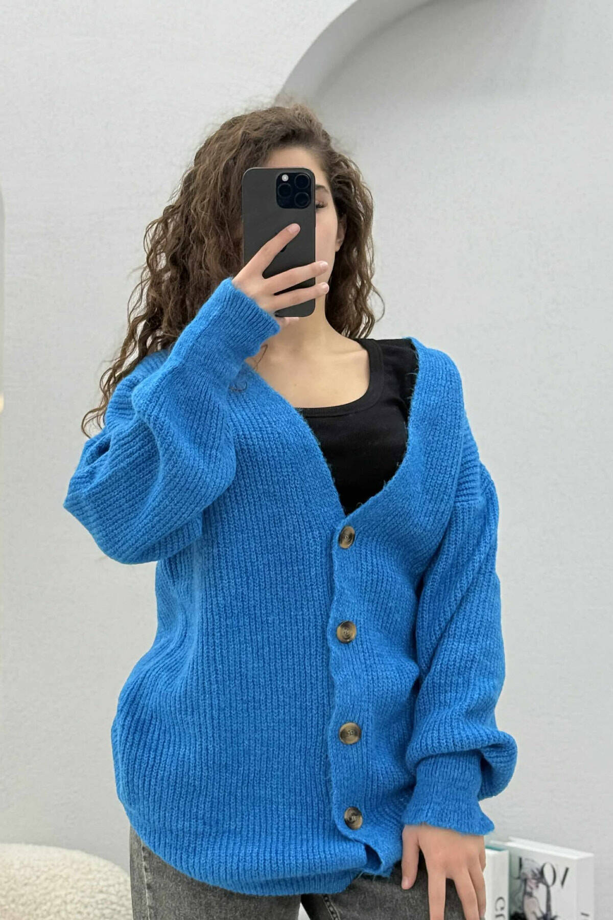 ONE COLOR KNITTED DIAMOND DETAIL BUTTONS WOMEN CARDIGAN FUCHSIA/CIKLAMI