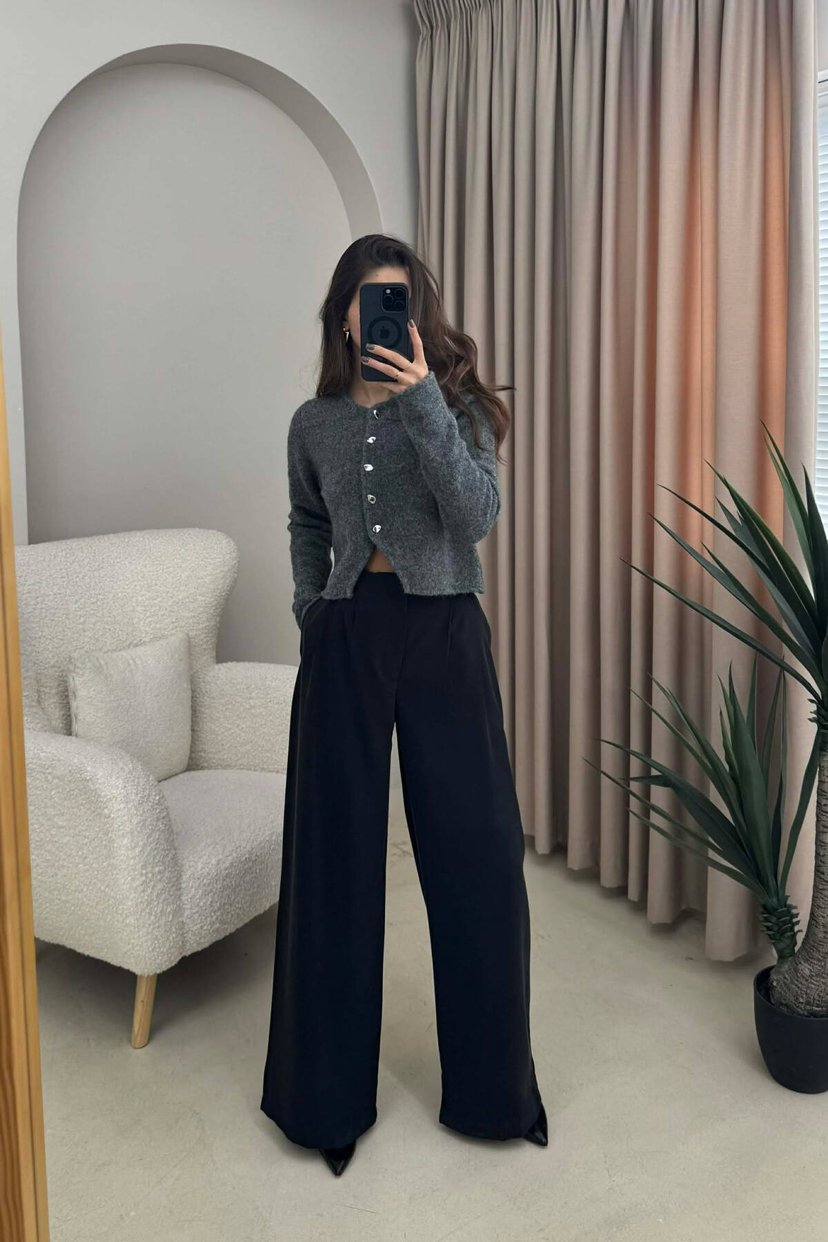 PULOVËR NJË NGJYRËSHE ME DETAJIN E KOPSAVE GOLD PËR FEMRA NË NGJYRË GRI