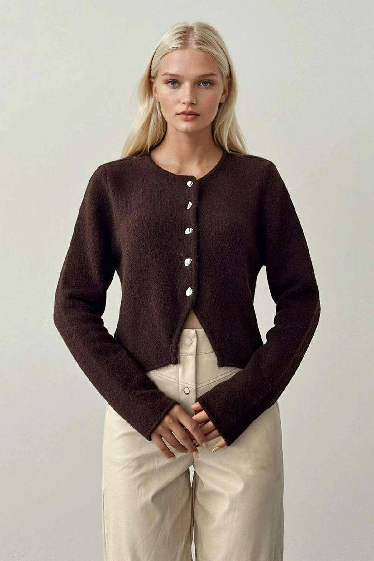 PULOVER E THURRUR E THJESHTE ME BUTONA PER FEMRA NE NGJYRE KAFE