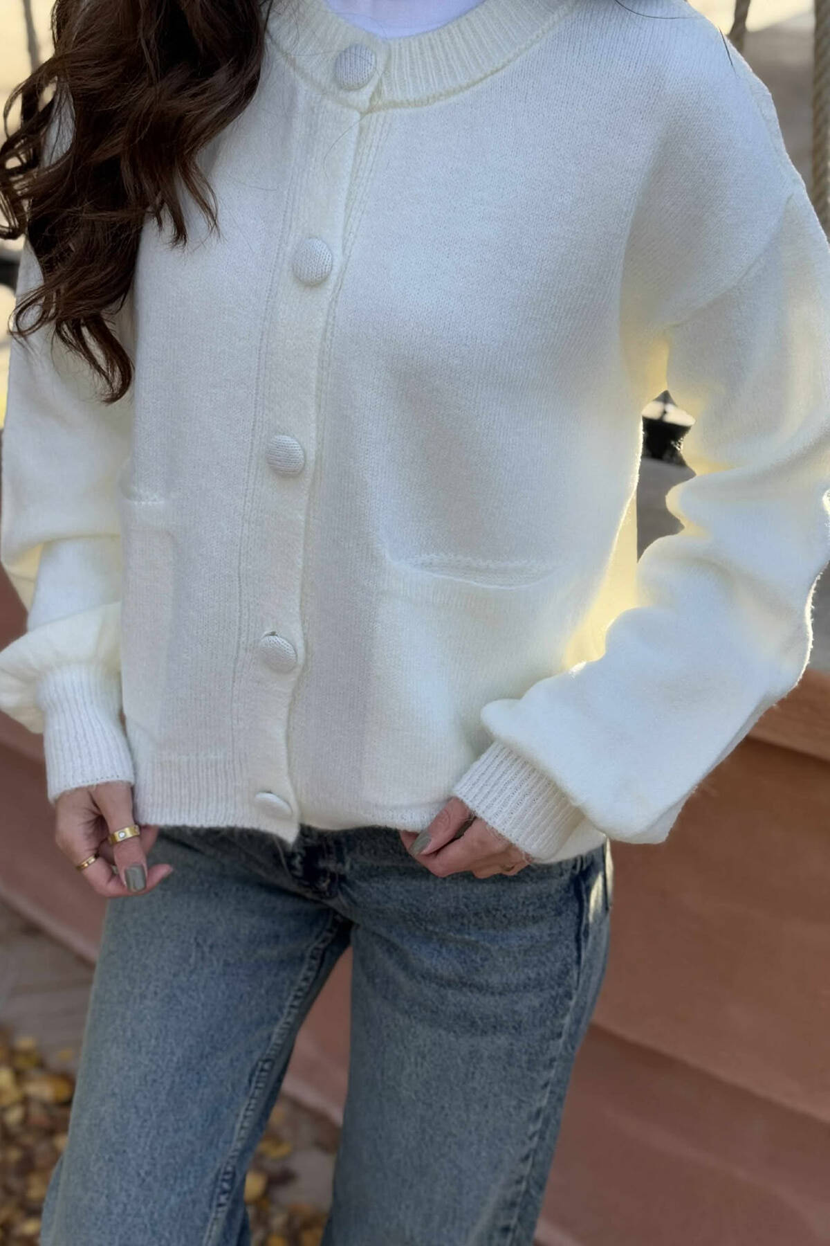 ONE COLOR BUTTONED WOMEN CARDIGAN CREAM/KREM