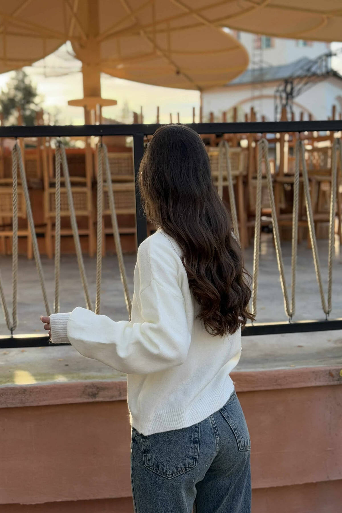 PULOVER NJE NGJYRESHE ME BUTONA GOLD PER FEMRA NE NGJYRE TE BARDHE