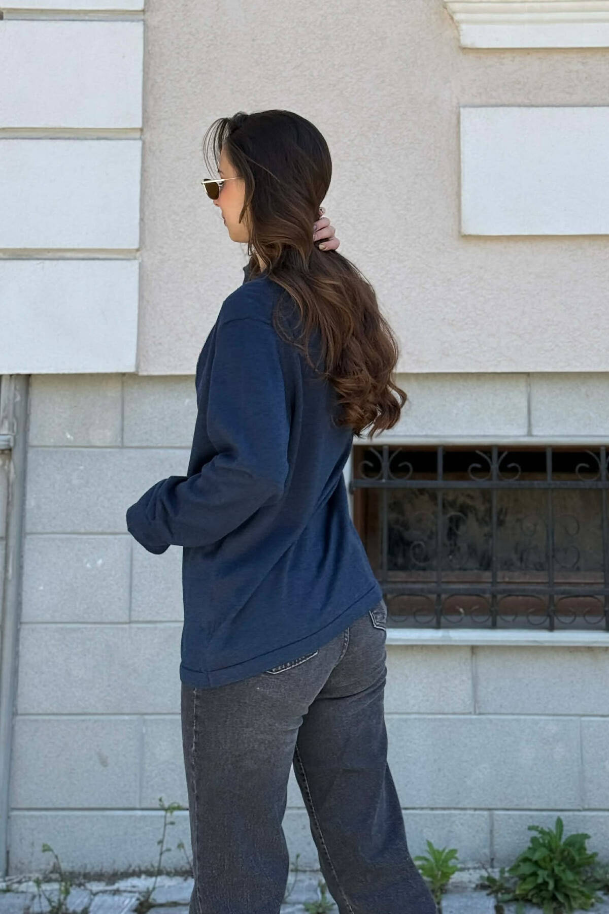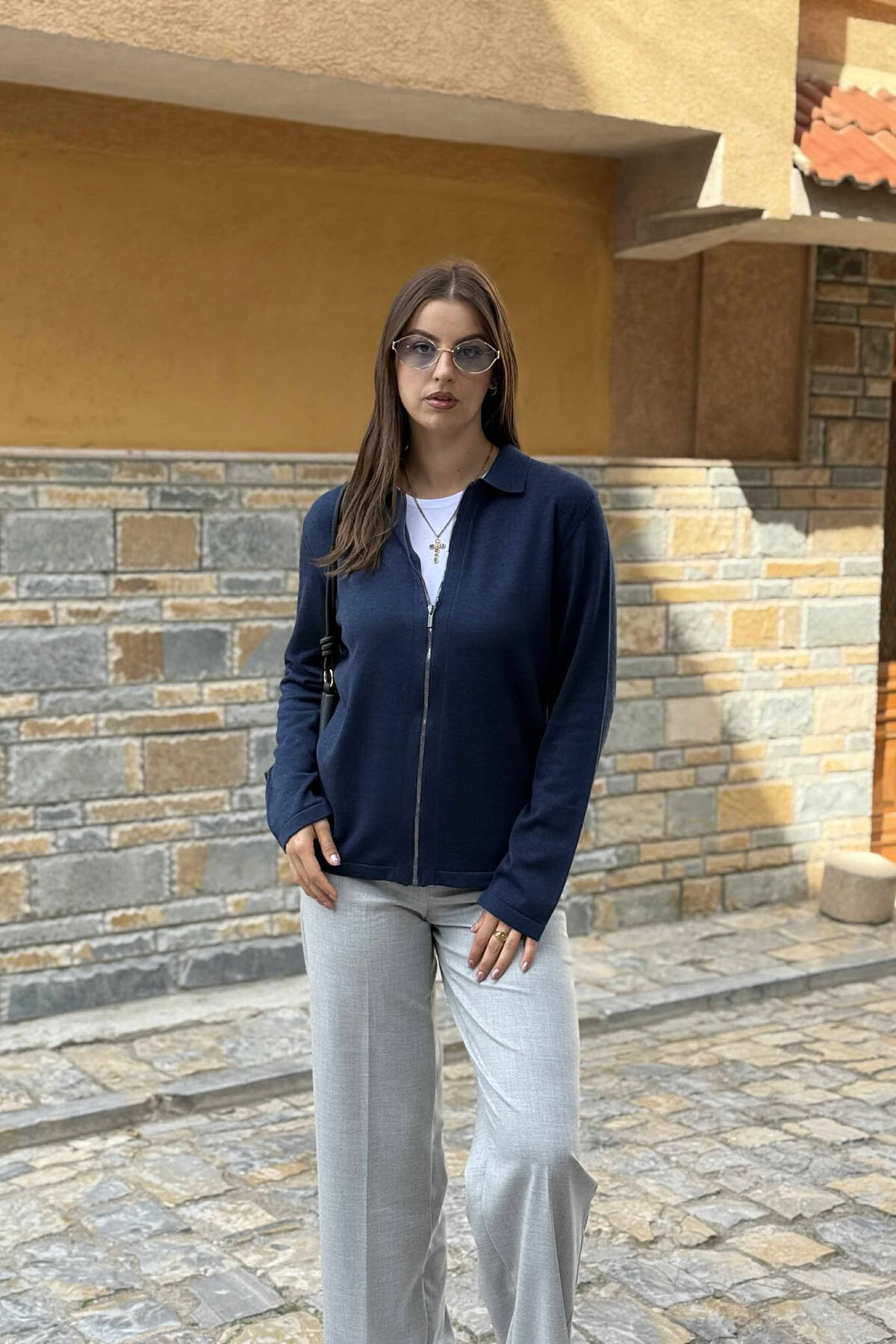 PULOVËR E THJESHTË NJË NGJYRËSHE PËR FEMRA NË NGJYRËN BLU TË ERRËT