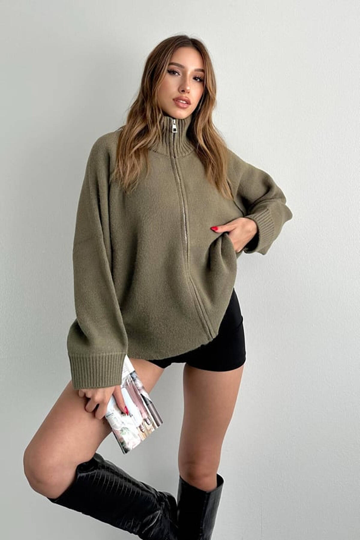 PULOVËR E THURRUR NJË NGJYRËSHE ME ZINXHIR PËR FEMRA NË NGJYRË ULLI
