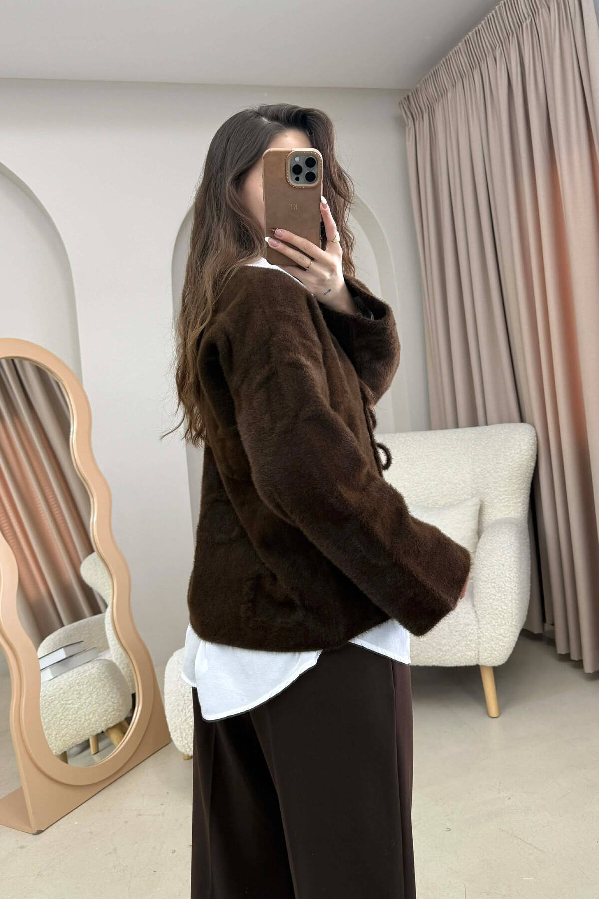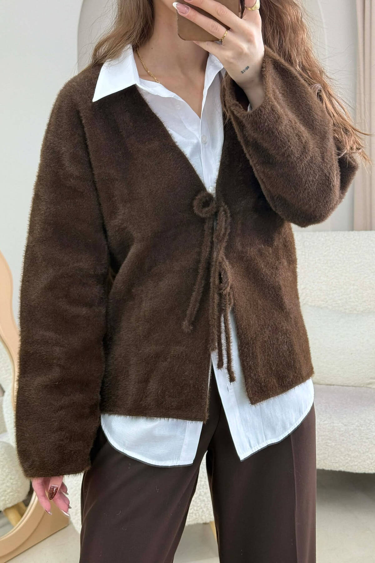 PULOVER ME LIDHESE PER FEMRA NE NGJYRE KAFE