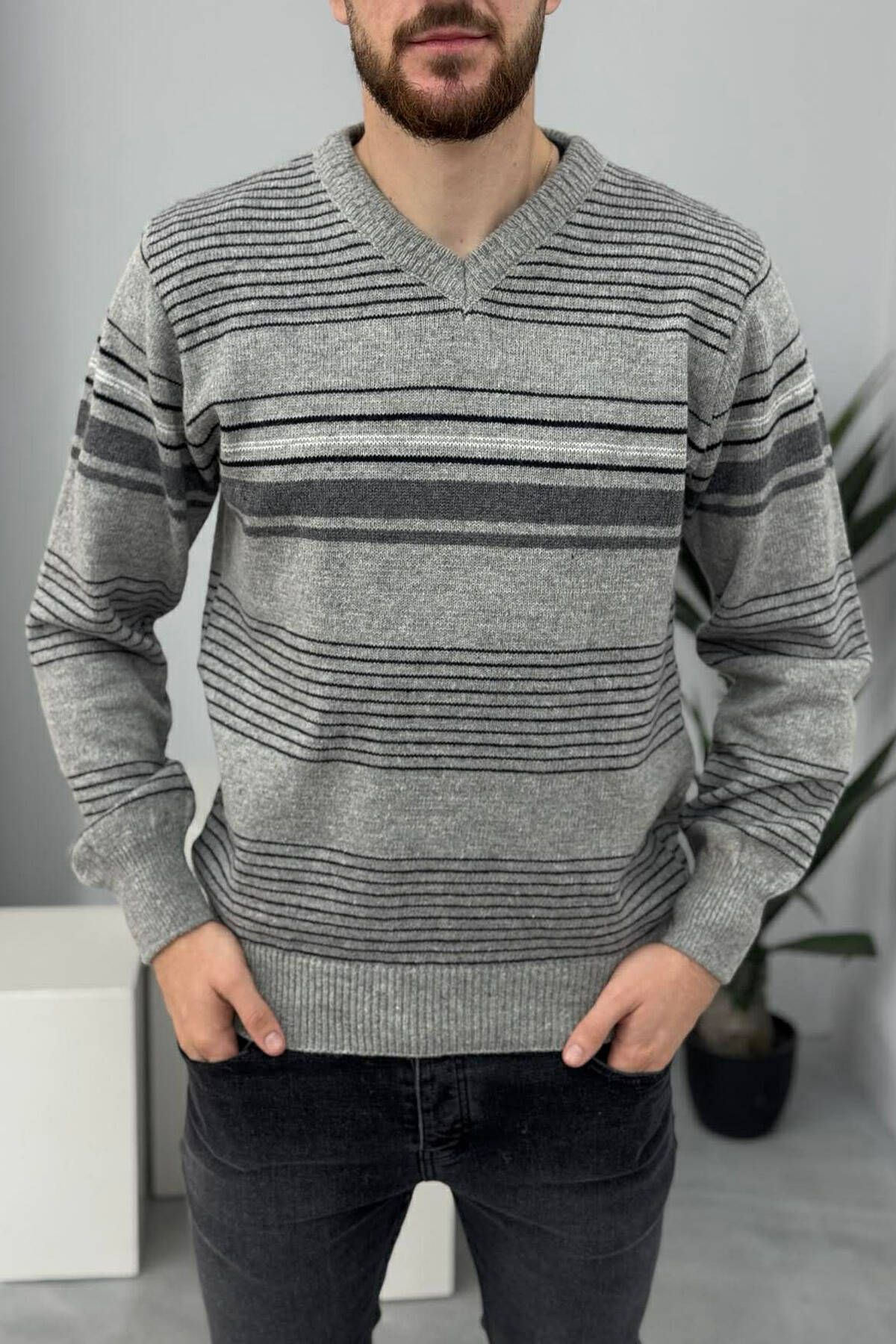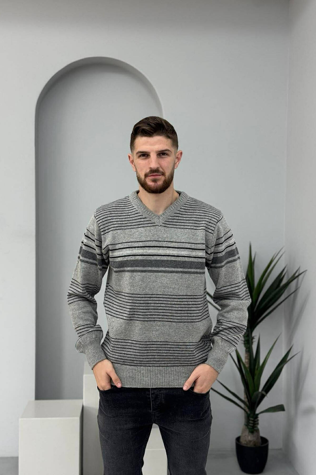 PULOVËR ME VIJA PËR MESHKUJ NË NGJYRËN GRI