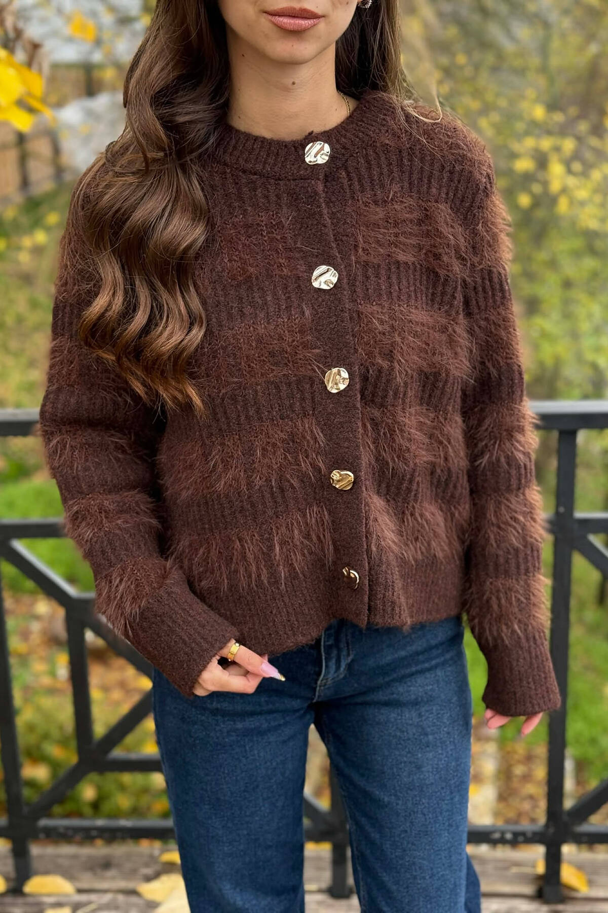 PULOVER E THURRUR E THJESHTE ME BUTONA PER FEMRA NE NGJYRE KAFE