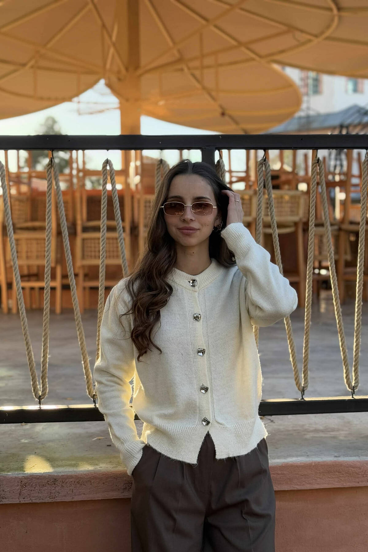 ONE COLOR BUTTONED WOMEN CARDIGAN CREAM/KREM