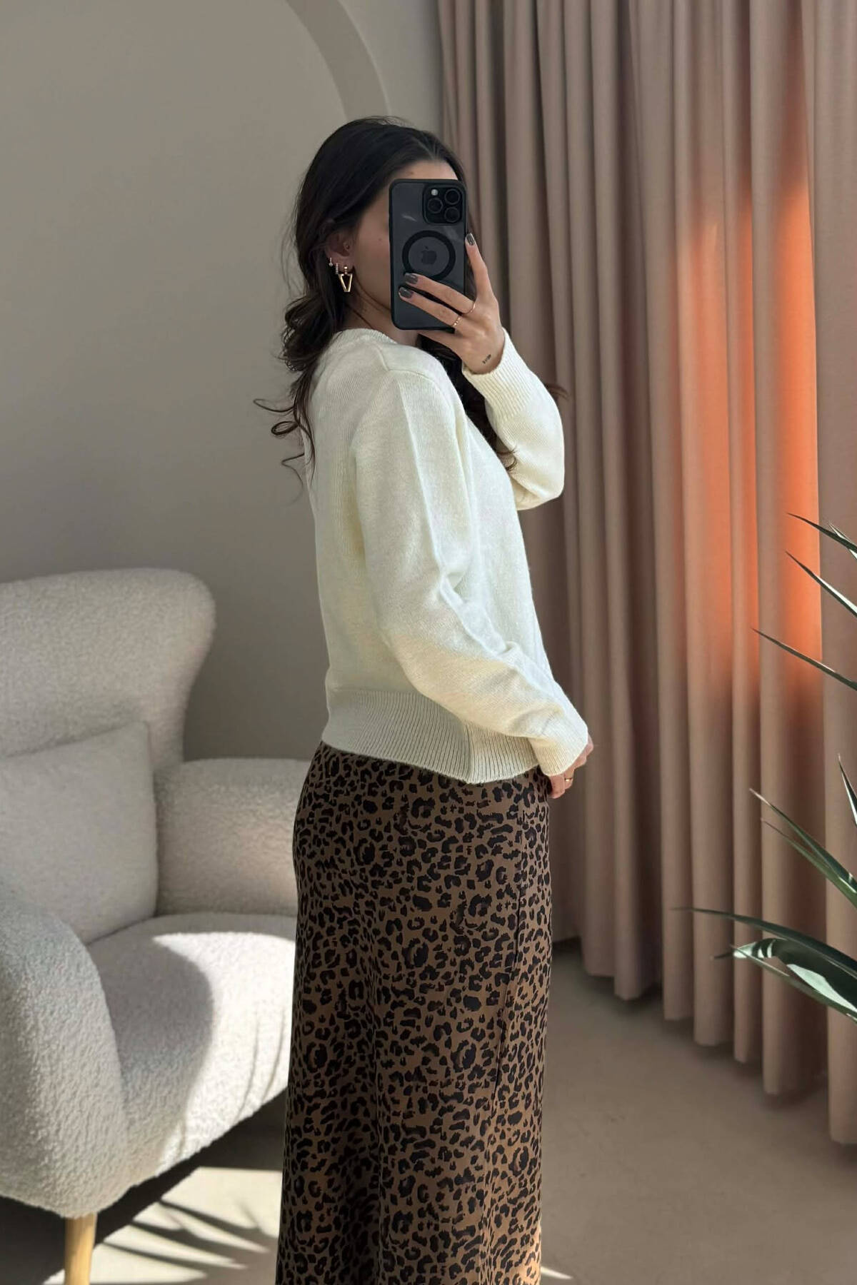 PULOVËR NJË NGJYRËSHE ME DETAJE BUTONASH PËR FEMRA NË NGJYRË KREM