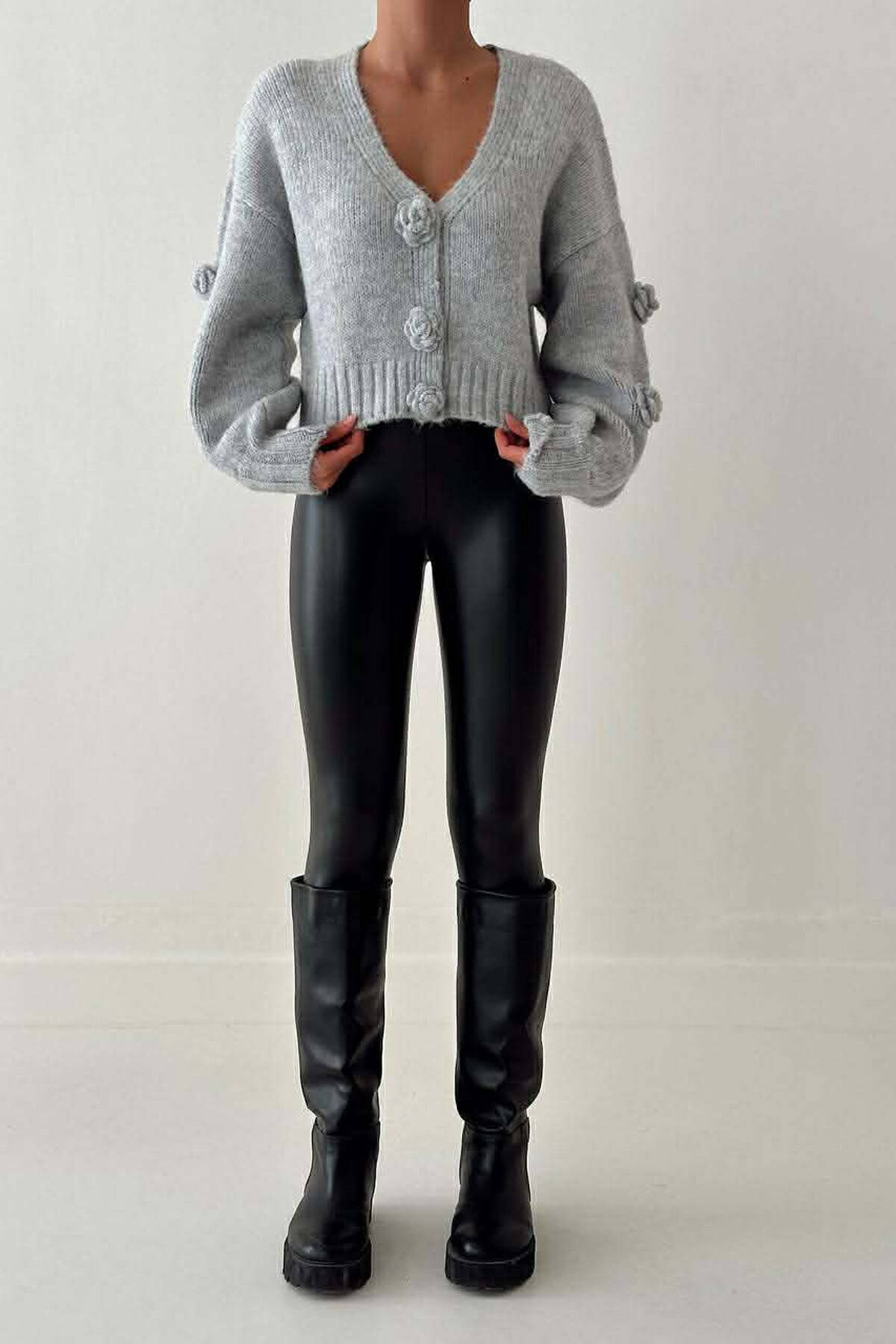 PULOVER NJE NGJYRESHE ME DETAJE TRENDAFILI PER FEMRA NE NGJYRE GRI TE ZBARDHUR