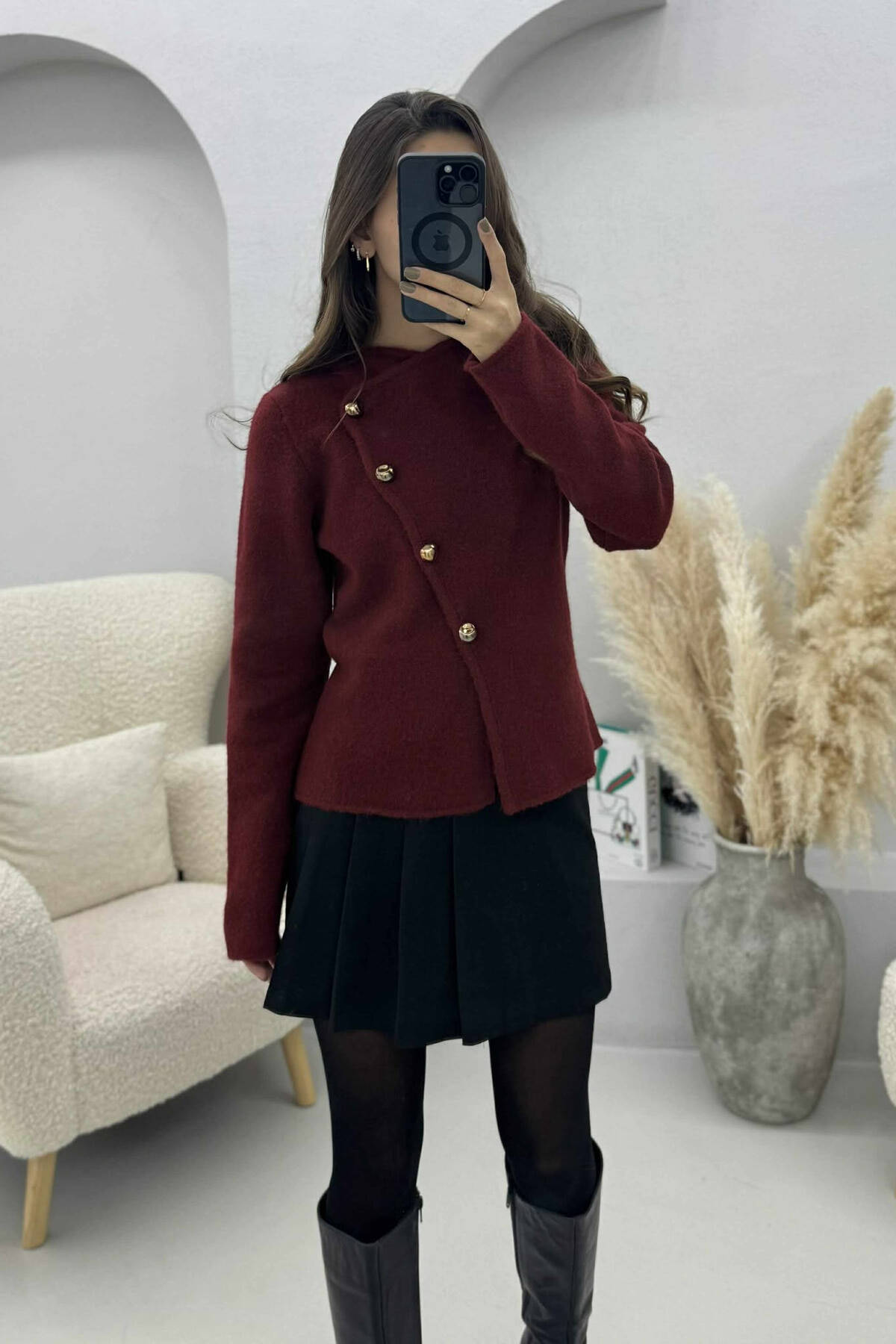 PULOVER E THURRUR E THJESHTE ME BUTONA PER FEMRA NE NGJYRE KAFE