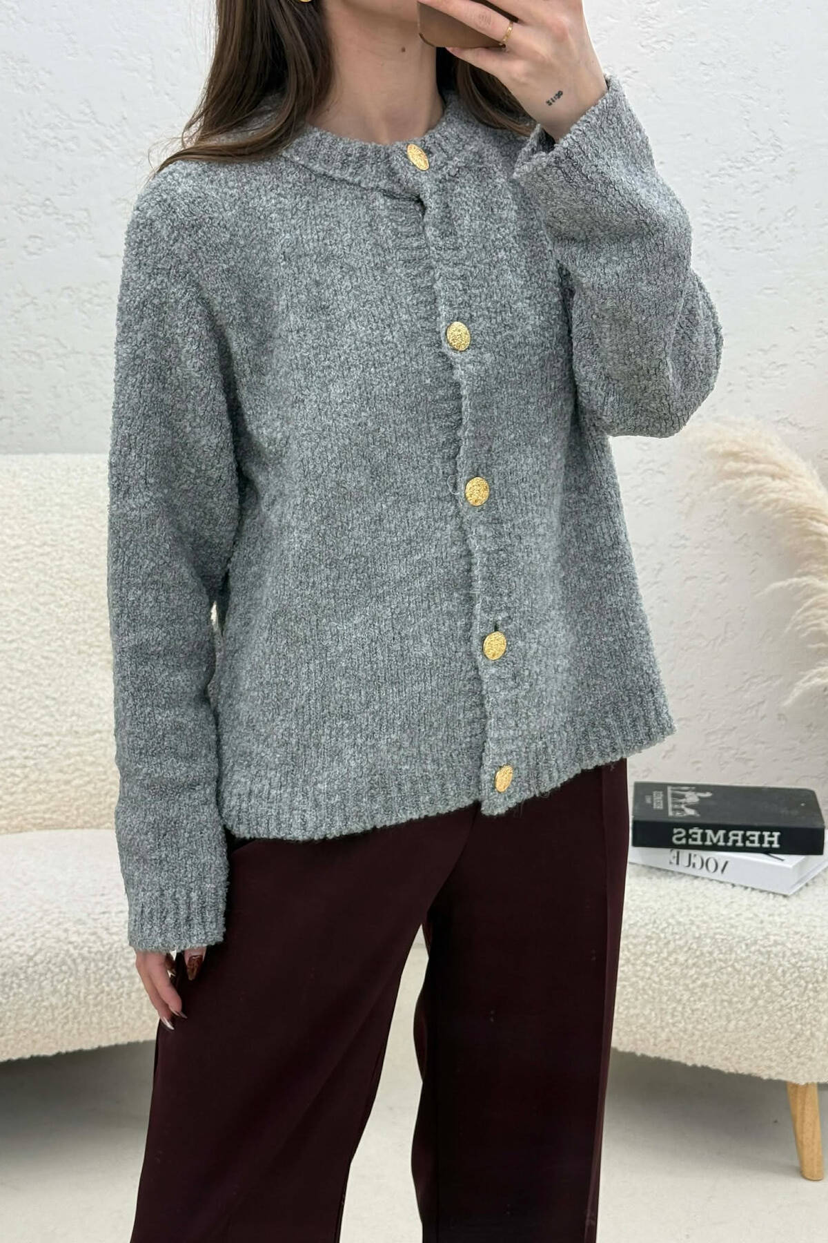 PULOVËR E THJESHTË NJË NGJYRËSHE PËR FEMRA NË NGJYRËN GRI