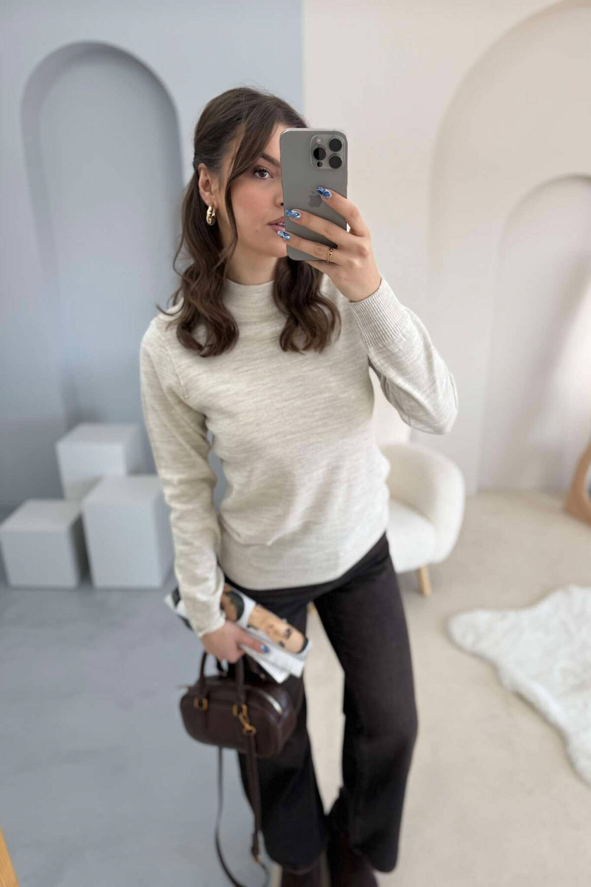 PULOVËR NJË NGJYRËSHE PËR FEMRA NË NGJYRËN BEZHË