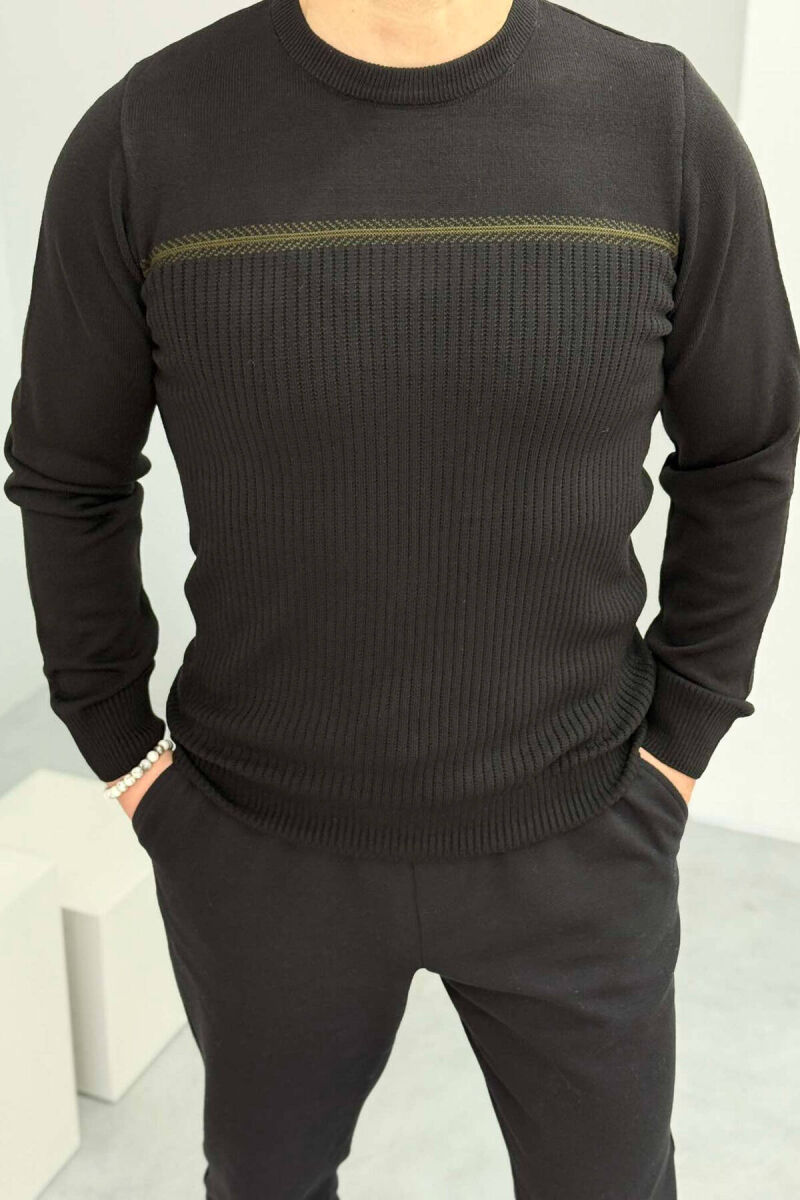 ROUND NECK STRIPED MEN SWEATER GREEN/JESHILE